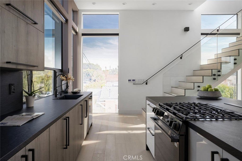 New Construction. Jaw-dropping Silverlake residence with 360 degree views from it's private rooftop entertaining space!! This stunning Tri-level features a lobby-inspired entrance surrounded by walls of glass, which is a continued theme throughout the home, bringing the outside in on each level. 2 bedrooms, each with en-suite bathrooms & a laundry area complete the use of space on the 1st floor, w stairs leading up to the main living area. The 2nd floor main living space is one large expansive great room filled with natural light & views of DTLA through soaring 15 ft floor to ceiling windows. There is also a balcony with large patio doors that can be opened to increase your indoor/outdoor entertaining space. A world class exhibition style chef's kitchen completes the space without overpowering it with graceful, modern cabinetry & custom porcelain counter tops with seating for 6 at the counter. The entire space is a work of art. The 3rd floor is comprised entirely of the Primary suite w dual balconies, affording sunset & city light views. Your primary suite also features an extra large walk-in closet complete with custom built-ins for your convenience. Beyond the closet you will stroll into your enormous spa-inspired bathroom featuring a floating dual vanity, stand-alone soaking tub & a wall to wall shower enclosure with dual controls and rain heads. Making your way up the last staircase you will walk out onto your own private rooftop/entertainment/observation lounge. The entire roof was made to hold furniture & friends & comes with an outdoor kitchen. The views from this space are unlimited from downtown, to the Hollywood hills, to the coast & spectacular sunsets every night. You will probably be The Host for all of your of your future dinner/cocktail parties, or just come up to relax and recharge by yourself. This home is truly a work of art, where great care was taken both on the exterior design and color palette, to the flow of the interior floor-plan, & is now available for you to see in person. Call today to schedule your own private your!