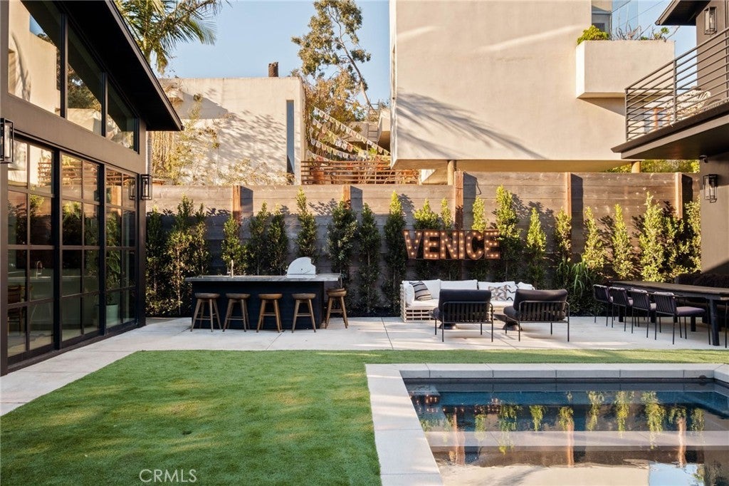 Newly Completed Designer Venice Compound with Pool, ADU & Exceptional Walkability Just completed in 2026, this exceptional designer residence delivers refined coastal living in one of Venice’s most sought-after locations—steps from Rose, Abbot Kinney, and the beach, offering true walkability with privacy and sophistication. The single-story main house features 4 bedrooms, all with en-suite bathrooms, plus a beautiful powder room . Cathedral ceilings, skylights, and custom windows and doors throughout fill the home with natural light. Every space is finished with thoughtful, high-end materials and a timeless designer aesthetic. The primary suite is a true retreat, showcasing a spa-like bath wrapped in plastered tadelakt, a soaking tub, a two-person shower, and a generous walk-in closet. The chef’s kitchen is outfitted with built-in Thermador appliances, a walk-in pantry, and seamless flow into the living and entertaining spaces. A dedicated movie room and wet bar—create the perfect setting for both intimate evenings and elevated gatherings. Outdoors, the private backyard is designed for entertaining, featuring a pool and spa, outdoor kitchen with built-in BBQ, and a fire-pit lounge and dining area. Set behind the pool is a fully permitted, two-story ADU with its own entrance, full kitchen and private patio, offering 2 bedrooms and 1.5 bathrooms. Offering a 1-year or longer lease. Don’t miss this rare opportunity to lease a newly completed Venice compound where architectural refinement meets the ease of beachside living in one of the Westside’s most vibrant neighborhoods. Please reach out to make an appointment for a showing!