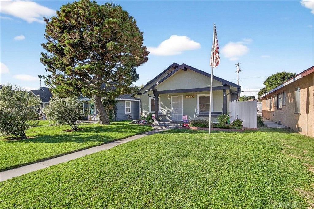 Welcome to The Cota Cottage, a classic California turn of the century home, located on a beautiful tree lined street with a spacious grassy front yard. The home’s timeless character is highlighted by a charming slate rock porch... perfect for enjoying your morning coffee while watching the sun rise in the East. Inside, you’ll find a blend of original charm and modern upgrades, including some original flooring, elegant crown moulding, energy-efficient dual pane windows with wood blinds, ceiling fans, and solar tubes that fill the home with natural light while reducing energy use. The home offers two bedrooms, each with ceiling fans, along with one full bathroom and a convenient half bath off the kitchen. Forced-air heating keeps the home warm and comfortable on cooler evenings. Near the front of the home is a versatile bonus room, ideal for a home office, crafting, nursery, or workout space. The modern kitchen features tile flooring, granite countertops, gas stove, built-in microwave, dishwasher, and recessed lighting. Just off the kitchen is a small utility room near the rear door, providing access to the fenced backyard and the two-car garage with alley access and additional parking. The garage includes a sink, washer and dryer hookups, water heater, termite clearance, and ample overhead and side storage. The space is fully plumbed, electrical, gas and waste lines... a potential ADU opportunity (buyer to verify with the City of Torrance). The backyard offers a mix of grass, concrete, and a brick patio, partially covered with lattice for shade... perfect for outdoor entertaining. Additional features include exterior floodlights, a security screen front door, an automatic sprinkler system, and refreshing ocean breezes from the West. Make lasting memories in this beautiful 107-year-young “new” classic Old Torrance home. An appraiser measured the property at approximately 1,087 square feet.
