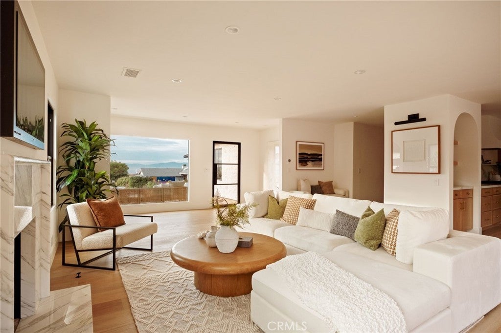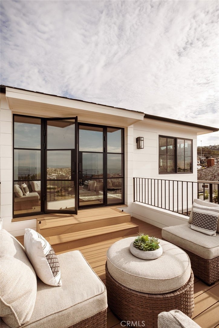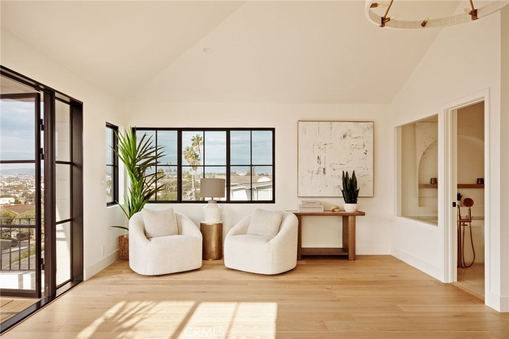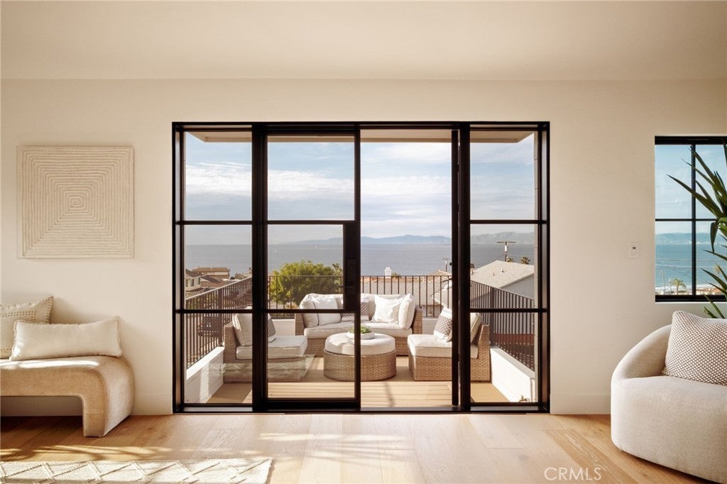 Where refined design meets coastal living, this thoughtfully remodeled residence offers a seamless blend of comfort, functionality, luxury and modern style. From the moment you enter through the custom Pinky’s steel front door, the home reveals an open-concept layout with wide-plank white oak flooring extending throughout the home, complementing the warm, neutral palette with beautiful natural light. The kitchen features custom rift white oak cabinetry, top-of-the-line Thermador appliances, and a layout designed for everyday use and entertaining alike. A walk-in pantry and a well-appointed laundry room add convenience and efficiency. Architectural details such as the custom arched bookcase and built-in bar introduce both character and sophistication. A striking 12-foot Pinky’s steel bi-fold door connects the main living space to a private backyard retreat, complete with TimberTech decking—ideal for outdoor dining and relaxation. Upstairs, the primary suite offers a private deck accessed through steel Pinky’s French doors with expansive ocean views. The spa-inspired bathroom and custom walk-in closet create a serene, retreat-like atmosphere. There are three additional bedrooms located on the main entry level, including one with ocean views. Additional features include a garage with a custom wood door, operational by phone app. Conveniently located near Riviera Village, the property offers close proximity to shopping, dining, and the beach. This home showcases quality craftsmanship, modern coastal design, and attention to detail throughout—an exceptional opportunity to experience elevated coastal living at it's finest. Live the So Cal dream!