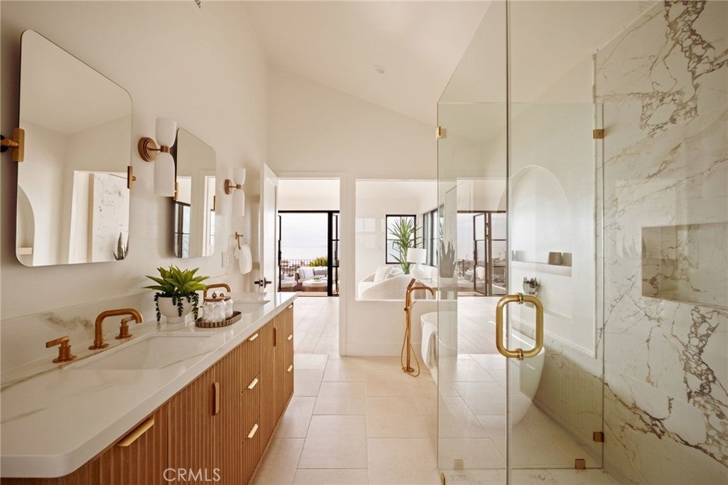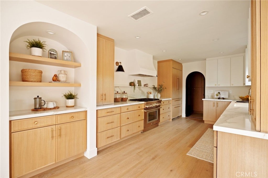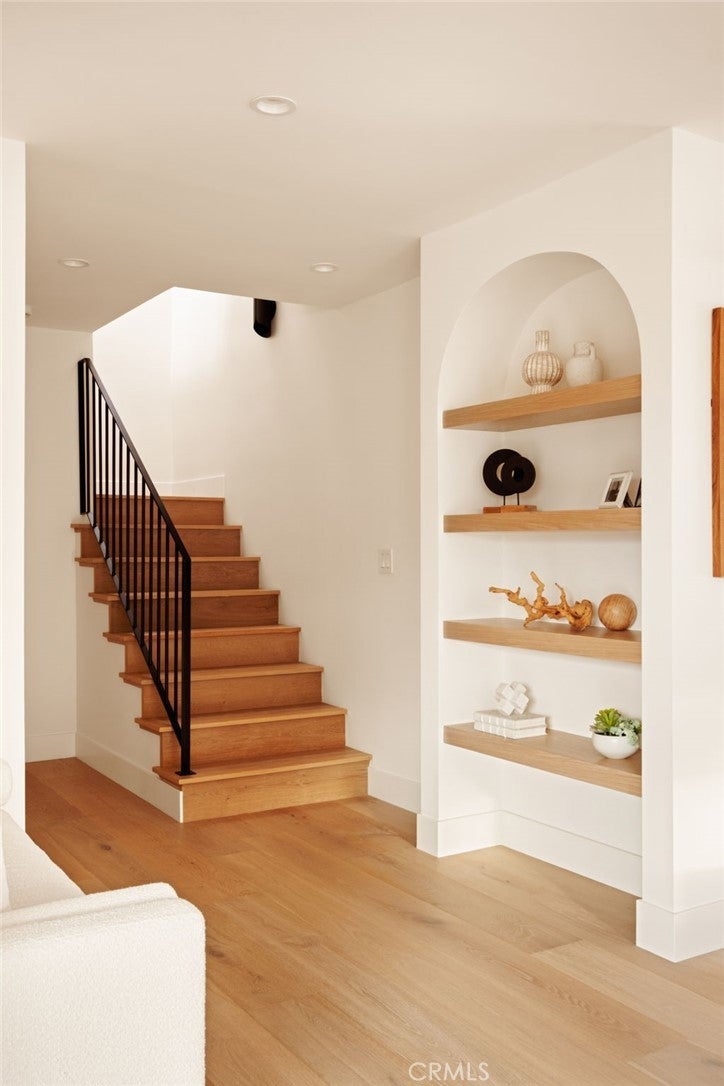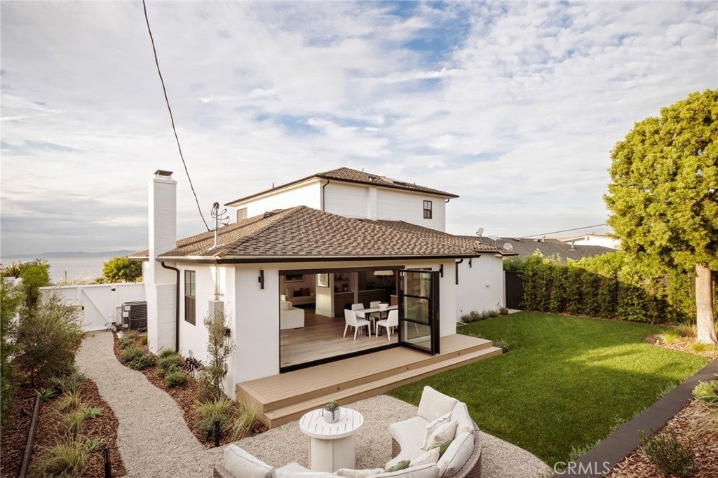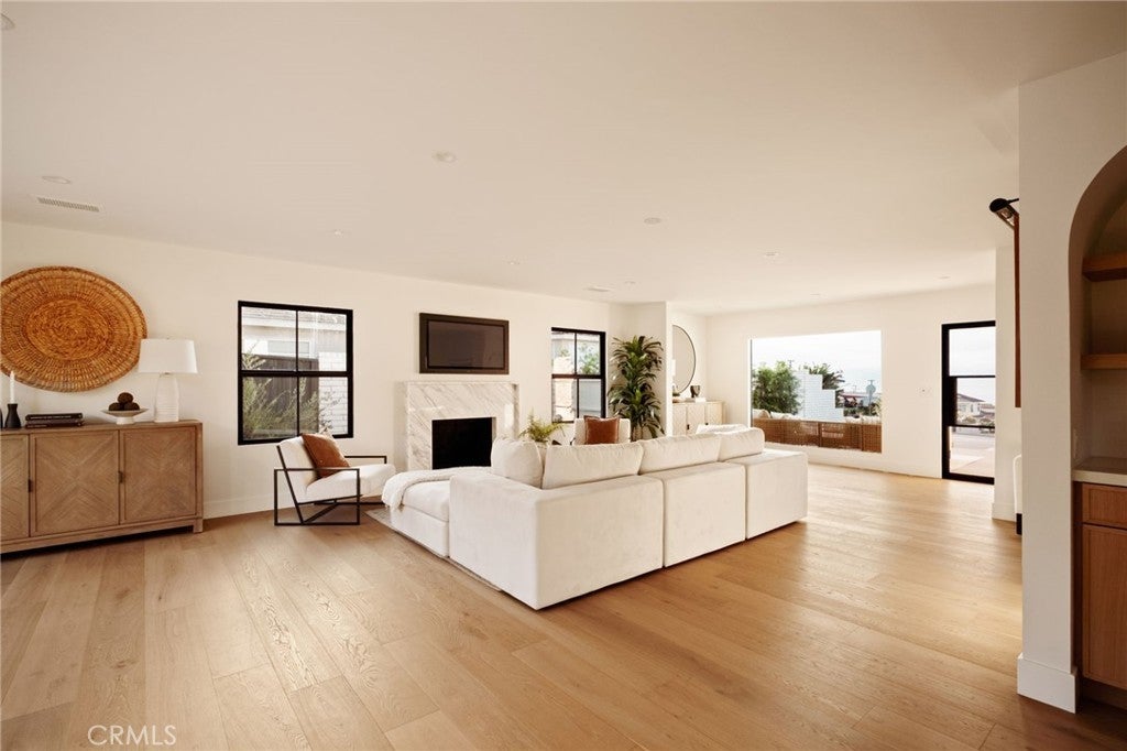 Where refined design meets coastal living, this thoughtfully remodeled residence offers a seamless blend of comfort, functionality, luxury and modern style. From the moment you enter through the custom Pinky’s steel front door, the home reveals an open-concept layout with wide-plank white oak flooring extending throughout the home, complementing the warm, neutral palette with beautiful natural light. The kitchen features custom rift white oak cabinetry, top-of-the-line Thermador appliances, and a layout designed for everyday use and entertaining alike. A walk-in pantry and a well-appointed laundry room add convenience and efficiency. Architectural details such as the custom arched bookcase and built-in bar introduce both character and sophistication. A striking 12-foot Pinky’s steel bi-fold door connects the main living space to a private backyard retreat, complete with TimberTech decking—ideal for outdoor dining and relaxation. Upstairs, the primary suite offers a private deck accessed through steel Pinky’s French doors with expansive ocean views. The spa-inspired bathroom and custom walk-in closet create a serene, retreat-like atmosphere. There are three additional bedrooms located on the main entry level, including one with ocean views. Additional features include a garage with a custom wood door, operational by phone app. Conveniently located near Riviera Village, the property offers close proximity to shopping, dining, and the beach. This home showcases quality craftsmanship, modern coastal design, and attention to detail throughout—an exceptional opportunity to experience elevated coastal living at it's finest. Live the So Cal dream!