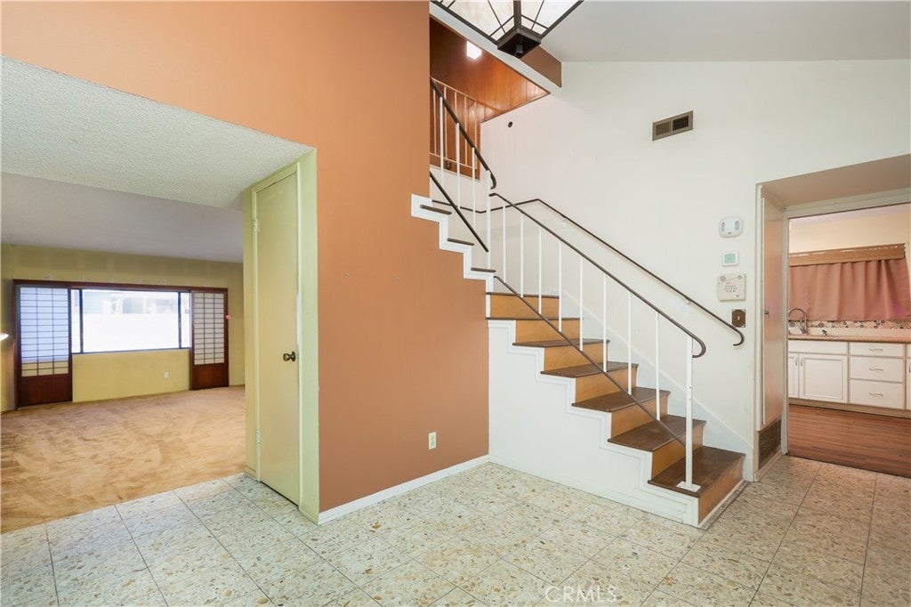 This spacious 1960s-era home offers a rare opportunity to reimagine a classic floor plan with abundant square footage and exceptional indoor-outdoor flow. Upon entry, you are welcomed by a foyer with a staircase leading upstairs, setting the tone for the home’s multi-level design. Just a few steps down, the expansive living room overlooks the large backyard, creating a bright and open gathering space. To the left of the main living area, a hallway leads to two bedrooms and a guest/shared bathroom, thoughtfully separated from the primary living spaces. The living room and family room are divided by a sliding screened door, offering flexibility for both open and defined entertaining. The family room features a wood-burning fireplace and sits slightly below the kitchen and dining area, adding character and dimension to the home. The kitchen has been updated with plentiful neutral cabinetry and stone countertops and connects seamlessly to the dining area. Together with the entry, living, family, and kitchen areas, the home features a circular floor plan that enhances flow while keeping the bedrooms tucked away from the main living spaces. A new 200-amp electrical panel was installed in 2024, providing a solid foundation for future upgrades and remodeling. Upstairs, a generous bonus area provides endless possibilities and can easily serve as a home office, game room, playroom, or home theater. To the left are one bedroom and two bathrooms, while the right side offers two additional bedrooms, creating a functional layout with flexibility for a variety of needs. The home is ready for remodeling and presents an excellent opportunity to customize and add value. One of the standout features is the expansive backyard, offering ample space for outdoor living and the potential to build an ADU (buyer to verify with the city). The garage includes a built-in darkroom, a unique and nostalgic feature ideal for retro photography enthusiasts, or it can be repurposed for other uses such as tool and workshop storage, hobby or craft space, or additional general storage. Situated on a quiet cul-de-sac street, the property is conveniently located near shopping, dining, and transit, making this a compelling opportunity for buyers seeking space, location, and long-term potential.