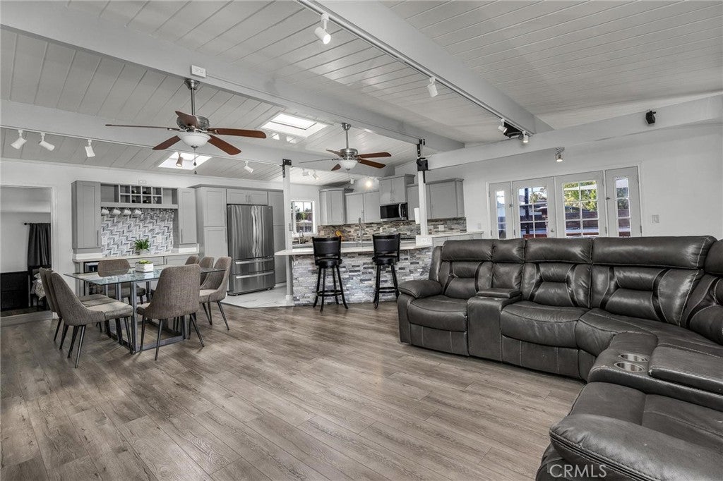 Welcome to this beautifully updated 4-bedroom, 3-bath home where modern design meets total energy independence. Fully electrified and powered by a paid-off 15.5kWh solar system with 17.5 years remaining on the grandfathered NEM 2.0 program, this home has not had an electric bill in years—even with an EV, AC, and outdoor spa tub. Upgrades include a new 200-amp service panel with dual subpanels, a 60-amp EV charger, heat pump water heater, mini-split AC/heater, and CAT6 internet wiring throughout. The open-concept living area features a custom-designed kitchen with stainless farmhouse and prep sinks, undercabinet lighting, pull-out shelving, a large peninsula with breakfast bar seating, and like-new LG and Samsung appliances. The adjoining living room offers an 85” 8K Samsung TV, surround sound, and custom built-ins for the perfect entertainment space. The primary suite is a true retreat, featuring a custom walk-in closet, luxurious bath with dual vanities, a large walk-in shower with four showerheads and bench seating, and a Euro-style wall-mounted toilet in a private room. Outdoor living shines with a beautifully finished backyard, complete with a natural gas BBQ and heaters, a 75” outdoor TV with surround sound, a 7-person spa tub, shade sails, fire pit, and USB outlets throughout. Two large custom sheds provide abundant storage and a finished gym space. Additional highlights include two custom-tiled bathrooms, modern water and drain lines, full exterior lighting, a newer roof and garage door, fully wired smoke and carbon monoxide system, and attractive front and side planter beds. Every detail has been thoughtfully curated to deliver comfort, style, and energy efficiency at its best.