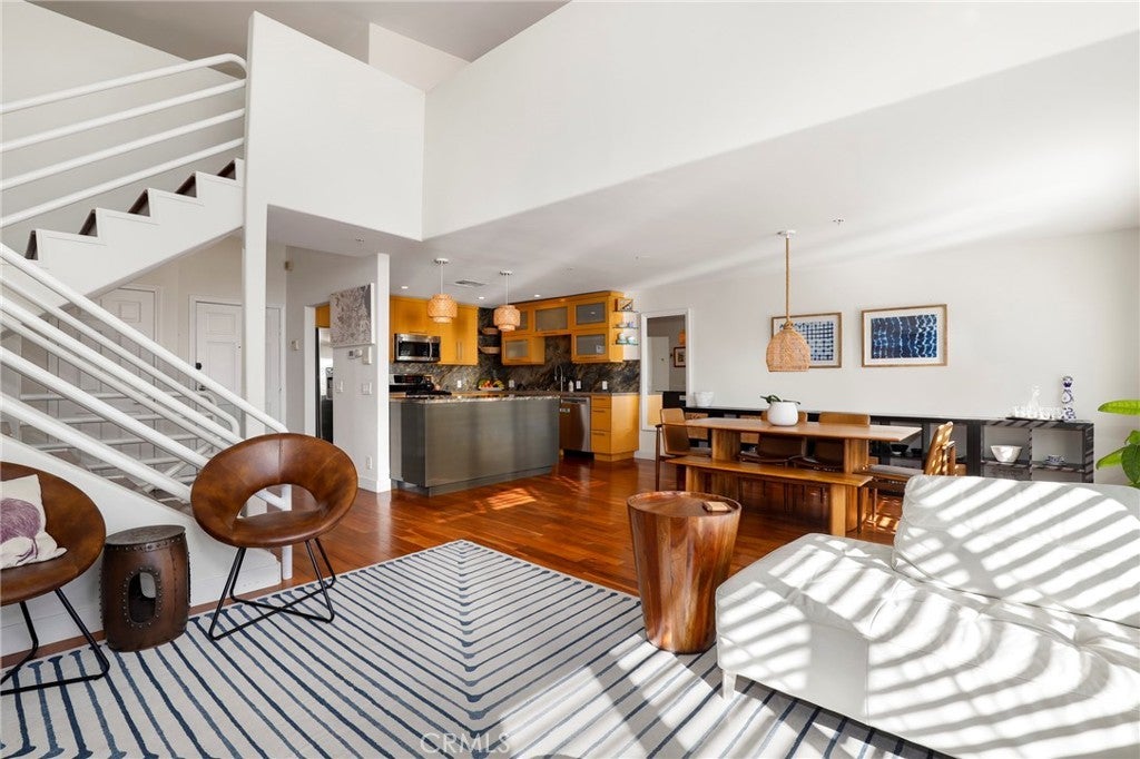 Proud to present this stunning 3-bedroom, 2.5-bath townhome-style loft condo offering 2,159 sq ft of modern coastal living in the heart of Santa Monica! This special tri-level residence impresses from the moment you enter, with soaring ceilings, ample windows, and exceptional natural light that enhances the open-concept living and dining areas on the main level. Beautiful engineered hardwood floors, recessed lighting, and a seamless indoor-outdoor flow to the main-level balcony create an inviting and functional space. The contemporary kitchen features granite countertops, a chef’s island, bamboo-style cabinetry, stainless steel refrigerator, stove, and dishwasher, a farmhouse sink, modern lighting, and a granite finished backsplash. A convenient powder room is located just across the hall. The upper level is a true highlight—a loft-style retreat with an expansive flex space perfect for a den, office, or workout area. This floor opens to a spacious balcony showcasing ocean views, while a second outdoor space down the hallway provides sweeping views of the Santa Monica Mountains. The lower level houses all three bedrooms along with in-unit stackable laundry. Both secondary bedrooms are generous in size with updated carpet and share a beautifully maintained full bathroom. The primary suite is an impressive sanctuary featuring updated carpet, built-in armoires, ample closet space, recessed lighting, and a gorgeous en-suite bathroom with a glass-enclosed shower, tile flooring, LED mirror, dual sinks, and a Vovo smart toilet. Additional features include two side-by-side parking spaces, an EV charger, central heat and air, and an HOA that recently installed a new roof on this boutique 6-unit building. All of this in an unbeatable Santa Monica location—moments from top-rated schools including Lincoln Middle, the boutiques and cafés of Montana Ave and Wilshire Blvd, Trader Joe’s, Memorial Park, 3rd Street Promenade, Santa Monica Beach & Pier, and so much more!