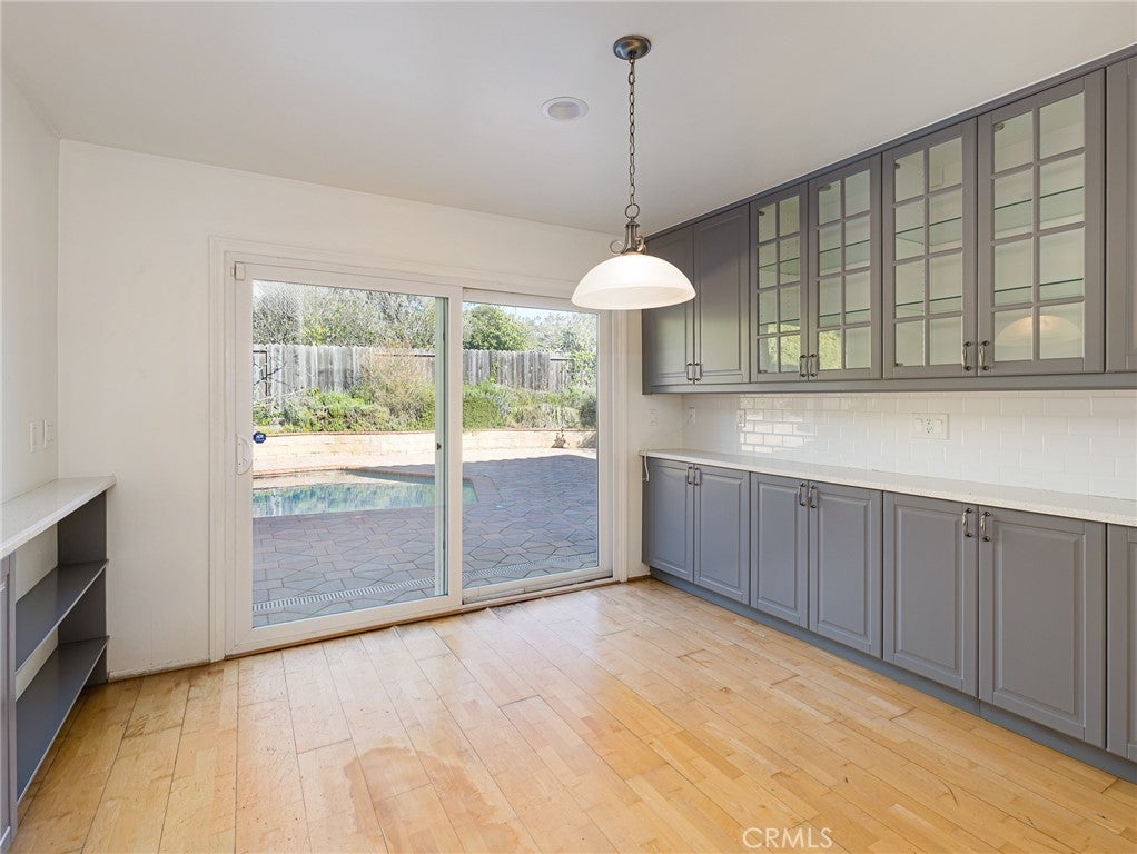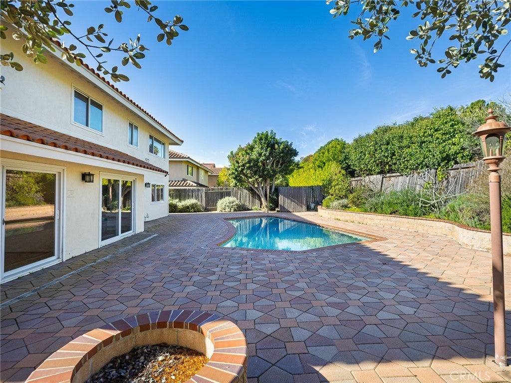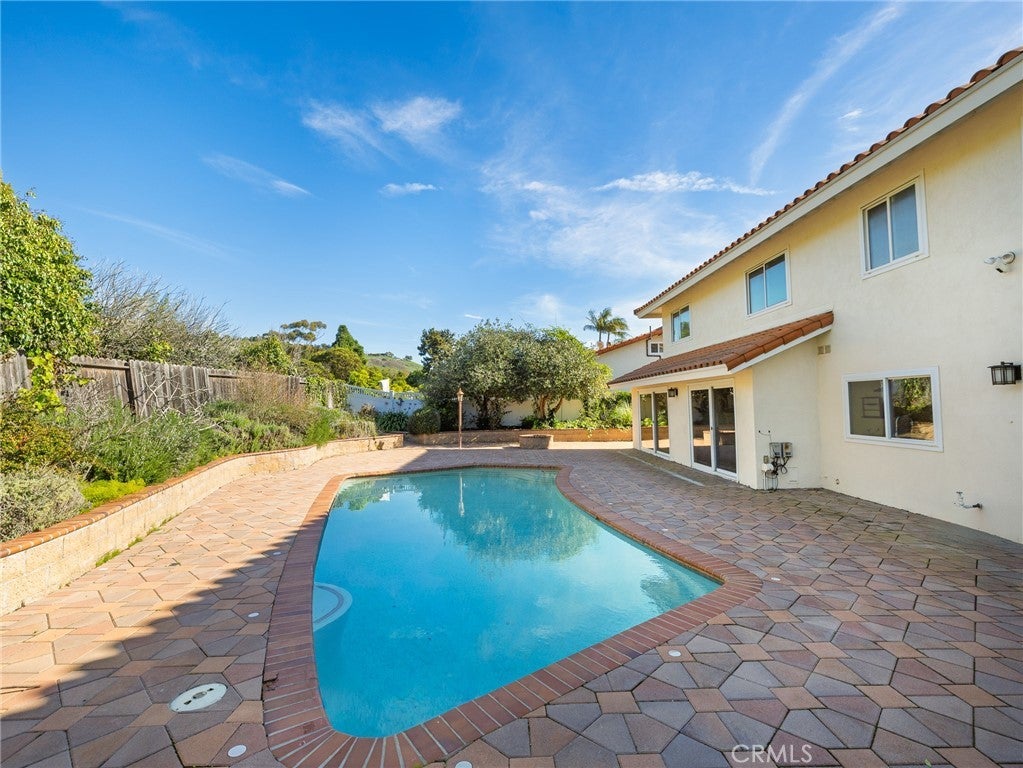 Located in the prestigious LA CRESTA neighborhood, this spacious 3,260 SF 5 bedroom, 3 bath home backs to the LOS VERDES GOLF COURSE. The soaring entry opens to the generous living room with fireplace. There is engineered wood flooring throughout the living room, FORMAL DINING ROOM, kitchen and family room. One bedroom and nearby 3/4 bathroom are also on the main level - perfect for guests or in-laws. The remodeled kitchen has cultured quartzite counters, soft close cabinets, induction cook top and stainless steel built-ins including double oven, microwave and dishwasher. The adjacent informal eating area has lots of built-in cabinets and a sliding door to the private POOL and patio. The pool/patio area is also accessible from the FAMILY ROOM and enjoys pavers and a fire pit. Upstairs, you'll find the large primary bedroom with ensuite bathroom and a huge walk-in closet. There are also three additional bedrooms upstairs that share a full bathroom with a double sink vanity. Most windows are dual pane. The attached THREE CAR GARAGE includes laundry hook-ups. Parking for three additional cars on the paver driveway. Come take a look!!!