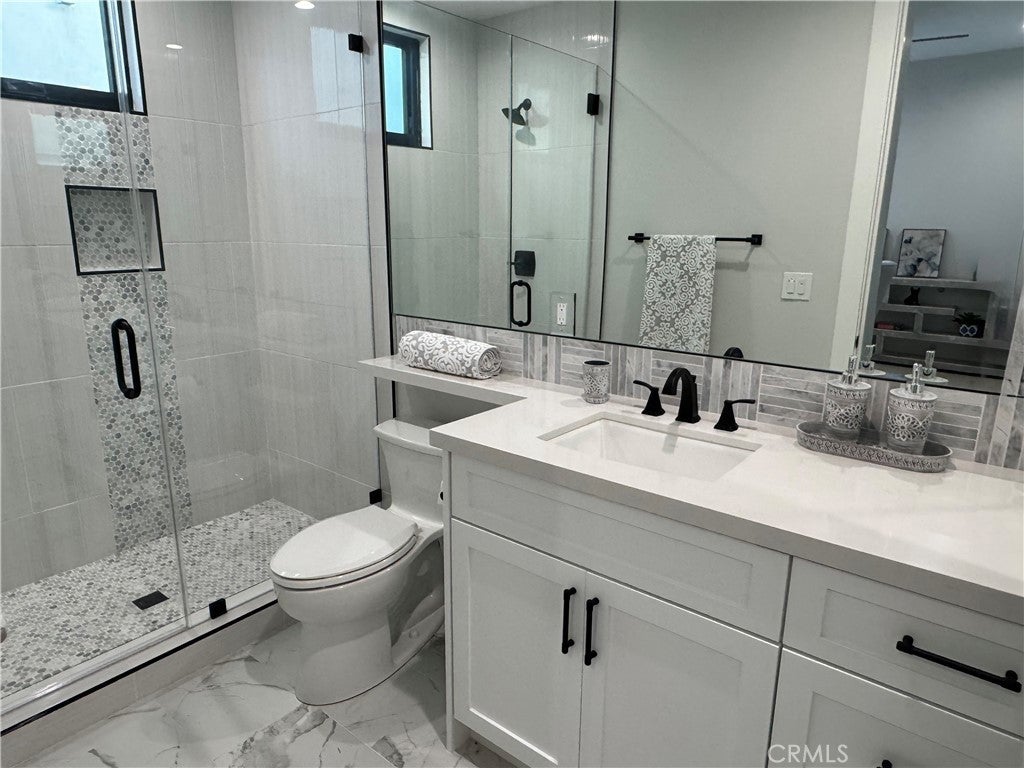 This 5 bedroom, 5 1/2 bath new construction home is located on a prime street in the Manhattan Beach Mira Costa area. This property has a large south facing backyard with plenty of room for kids, pets or a future pool. Open floor plan with large commercial kitchen perfect for a large family or entertaining. White oak hardwood throughout. Large laundry room. Large master suite with extraordinary walk in master closet. Don’t miss this opportunity!