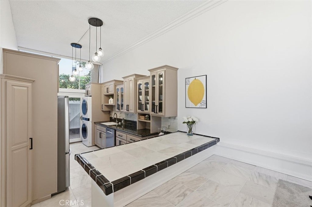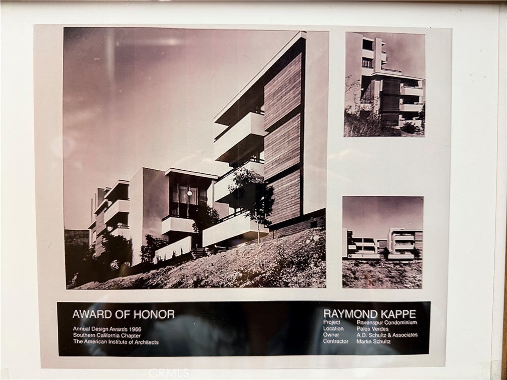 Designed by renowned architect Ray Kappe, this architecturally significant, townhome-style residence is part of an award-winning building recognized with an Award of Honor at the 1966 Annual Design Awards by the American Institute of Architects. The multi-level layout offers a rare blend of volume, light, and flexibility, with vaulted ceilings, defined living spaces, and modern updates throughout. The entry level features a spacious living room with balcony access and a versatile bedroom ideal for an office, den, or guest space with an attached bath & shower. The remodeled kitchen includes stone countertops, ample cabinetry, and opens to a large private patio—perfect for indoor-outdoor living. Upstairs are three bedrooms, including a primary suite with updated bath and walk-in closet, plus two additional bedrooms with custom closets and full bath. Additional highlights include abundant storage, lots of private garage storage, and two side-by-side parking spaces. Conveniently located near shopping, dining, entertainment, Peninsula High School, and just minutes from the coast and Terranea Resort. HOA includes building insurance, maintenance, cleaning, pool, landscaping, trash and water.