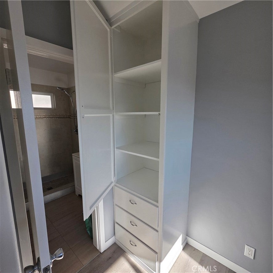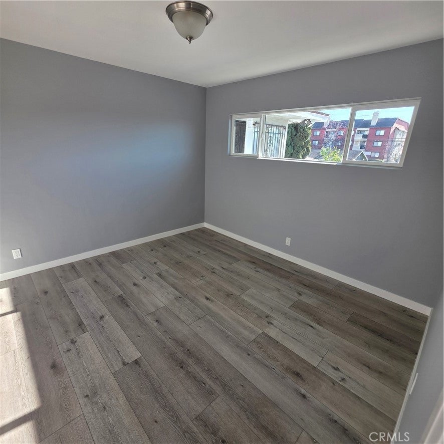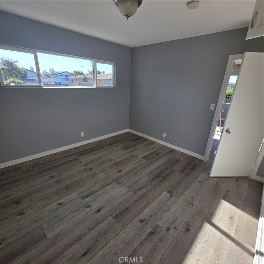 This quiet 1-bedroom back unit is on the second floor. Ample natural light illuminates the living room and kitchen from windows. The kitchen features an adjoining utility room that has a counter with storage space and a back door. The bedroom has ample light with plenty of closet and storage space. The adjoining full bathroom also has access to the utility room and kitchen. The unit comes with dedicated, covered parking space. There are also storage in front of the parking space for the tenant's use.