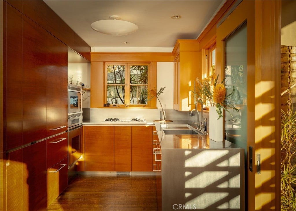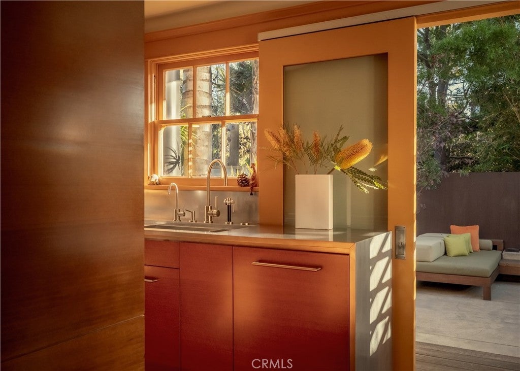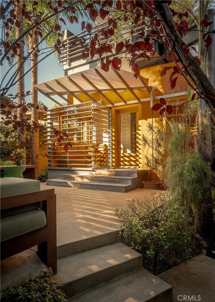 542 Altair Place is a rare jewel and a standout Venice architectural residence originally designed owned and occupied by renowned architect Steven Shortridge. Shortridge created this home as a personal expression of thoughtful design, emphasizing continuity over time and a strong connection between interiors and the outdoor landscape. Warm Douglas fir ceilings with a refined ceiling reveal, custom cabinetry throughout, and a sculptural floating staircase reflect a level of craftsmanship seldom found in residential architecture. The home balances intimacy, light, and connection to the outdoors. Though modest in scale, thoughtfully composed outdoor living environments extend the residence beyond its interior footprint, inviting year-round enjoyment of Southern California’s climate. The grounds feature multiple intimate settings, anchored by two gas-fired fire pit lounges and a serene water feature—ideal for entertaining and retreat. The landscape was designed by acclaimed landscape architect Jay Griffith, transforming the property into a private sanctuary deeply integrated with the architecture. After purchasing the property directly from Shortridge in 2013, the current owner commissioned him to design a second-floor addition. Shortridge created a cantilevered, floating second story and incorporated state of the art sound-proofed windows throughout the home to create a still and serene environment. This true architectural masterpiece was the last project Shortridge worked on before his untimely passing. This two-bedroom, two-bath retreat offers a quiet, calming atmosphere with abundant natural light and views of surrounding greenery. The downstairs bedroom—currently used as a living and music space—features a sliding pocket door that preserves vintage character while offering flexibility and privacy. The upstairs suite includes heated flooring and a radiant-heated balcony. The kitchen preserves the home’s original character with original window casings integrated into refined contemporary cabinetry and a curated suite of premium appliances. Additional features include one-car parking with EV charging, undergrounded electrical wiring, and whole house water purification system. Ideally located just blocks from Abbot Kinney Boulevard and moments from the beach, canals, and the coastal lifestyle that define Venice living. Schedule your private appointment today.