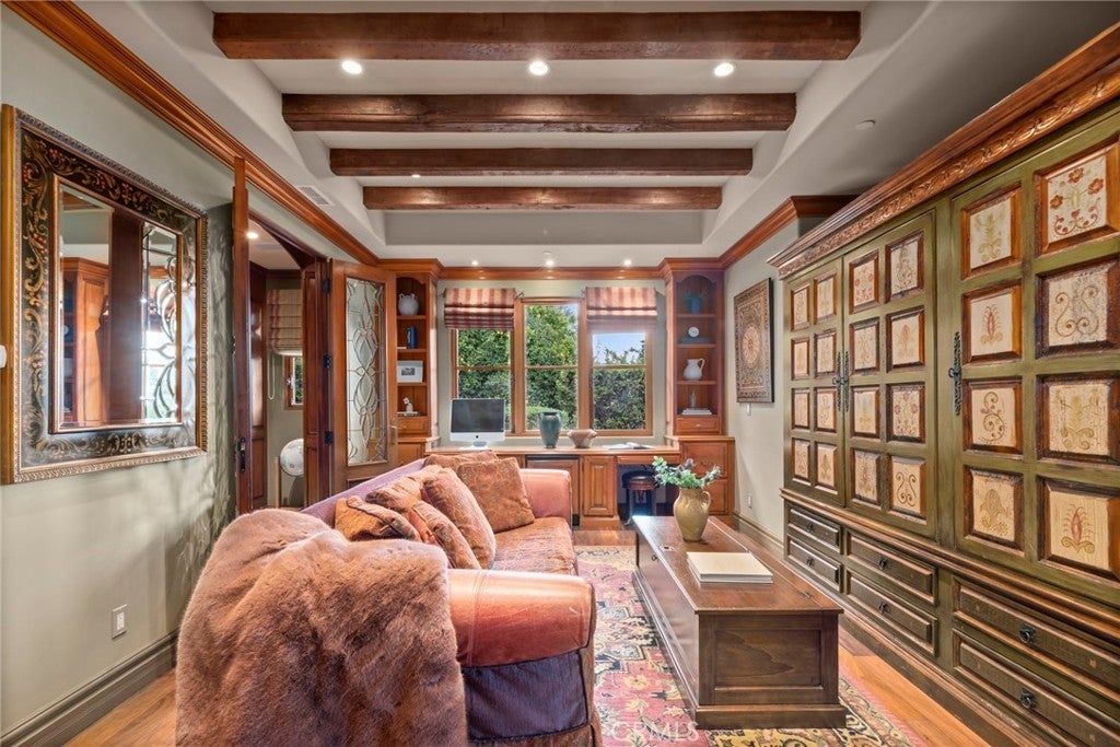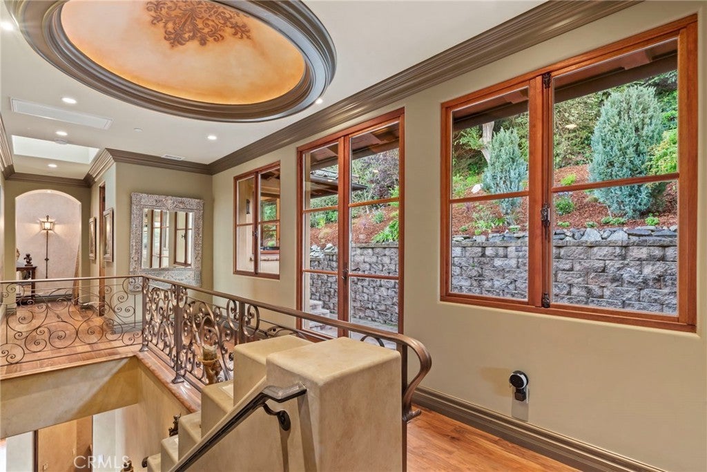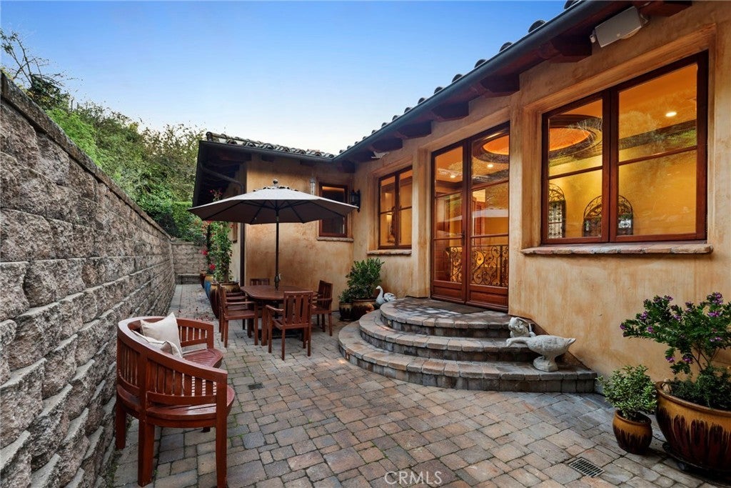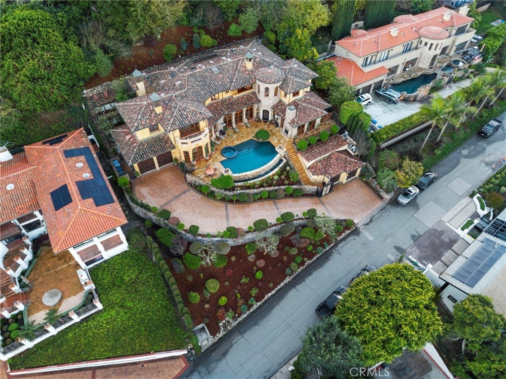 Available for the first time ever, 4 Yellow Brick Road is a custom Italianate estate tucked away on a private cul-de-sac shared by only seven homes. Defined by timeless architecture, exceptional craftsmanship, and sweeping coastal views, the residence stands as a true original. Designed by renowned architect Doug Leach, the home has been featured in magazines and commercials and has influenced multiple South Bay residences since its completion in 2005. Built as a forever home, the owners worked closely with the architect to create a floor plan that seamlessly balances multigenerational living with elevated entertaining. Spanning 6,468 square feet on an over half-acre lot, the home is thoughtfully oriented to capture 180-degree ocean and city views from nearly every room, creating a constant connection to its elevated setting. Ideally located within walking distance of the Palos Verdes Golf and Tennis Club and just minutes from Riviera Village and Redondo Beach, the property also offers convenient access to acclaimed restaurants and scenic coastal trails. The residence offers five bedrooms plus a library that functions as a sixth bedroom, along with seven bathrooms and an impressive collection of resort-style amenities. A Skip Phillips designed infinity pool and spa anchor the outdoor spaces, surrounded by lush gardens and multiple private areas for entertaining. Inside, a home theater with a 110-inch screen, two-stop elevator, and temperature-controlled wine cellar provide comfort and convenience. The chef’s kitchen features custom French Traditions cabinetry, Miele double ovens, a full-size Sub-Zero refrigerator, warming drawers, a built-in espresso machine, and an expansive butler’s pantry ideal for hosting memorable gatherings. Upstairs, the primary suite serves as a private retreat with double walk-in closets, a spa-like his-and-hers bathroom finished in honey onyx marble, and a jetted tub overlooking both Downtown Los Angeles and the Queen’s Necklace. Hand-selected finishes throughout include lighting by Fine Art, Belgard stone retaining walls, an Olympic stone pool deck, imported Italian tile and brick, walnut hardwood flooring, natural limestone, ceiling beams sourced from a historic French barn, and gates accented with wood imported from India. Rare and emotionally compelling, this is a home that must be experienced to be truly appreciated. An opportunity that comes along once in a lifetime.