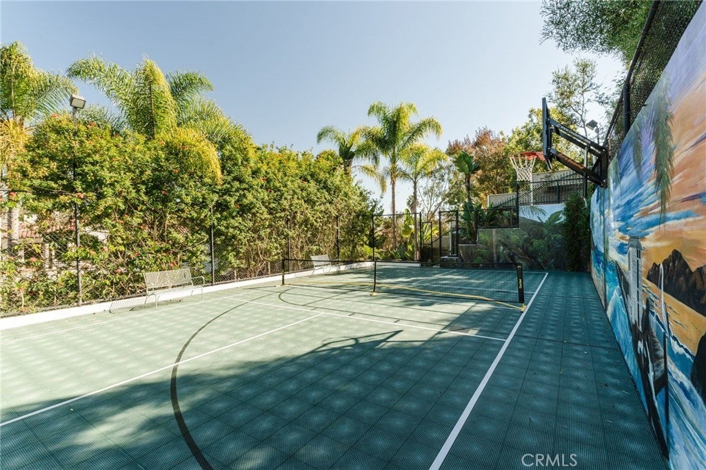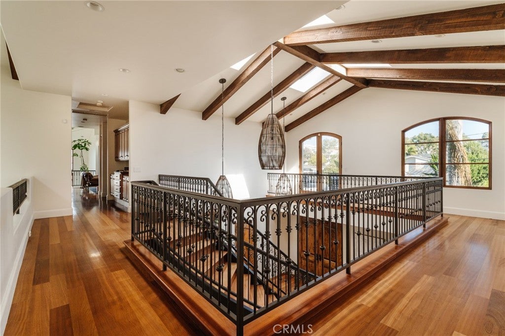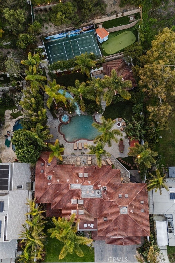 Discreet. Elevated. Resort-Inspired. Set on the third-largest lot in Hermosa Beach, Hidden Hermosa is a rare, resort-style estate blending exceptional scale, privacy, and a deep connection to nature. Spanning over half an acre, the property feels worlds away from the coast while remaining just moments from the beach, downtown Hermosa and Manhattan Beach, and the Valley-Ardmore greenbelt. Inspired by the timeless elegance of Montecito and Santa Barbara–style compounds, the home presents understated sophistication from the street before unfolding into a lush sanctuary. Mature palms, bamboo, and layered tropical landscaping surround the estate, creating a tranquil retreat enhanced by the valley setting, which offers calm evenings, minimal coastal wind, and sound that carries inward rather than outward, ideal for entertaining and everyday serenity. The main residence spans approximately 7,400 square feet and offers six bedrooms, including five upstairs and one on the main level, complemented by a fully detached one-bedroom ADU guest house providing complete independence. Soaring 25-foot ceilings, expansive glass, and French doors create seamless indoor-outdoor flow, while warm wood floors, exposed beams, and custom cabinetry bring refined comfort throughout. Open-concept living spaces extend effortlessly to the backyard grounds, supported by a Savant home automation system, private movie theater, and thoughtfully updated amenities. Upstairs bedrooms enjoy terrace access overlooking the grounds, while the primary suite serves as a true retreat with vaulted ceilings, fireplace, direct outdoor access, a custom walk-in closet, and a spa-like bath with serene garden views. Outdoors, the estate operates as a self-contained resort, anchored by a lagoon-style saltwater pool and spa with waterslide and zip line. Entertaining areas include an outdoor kitchen, fire pit, gazebo, dining spaces beneath towering palms, a 1,000-square-foot multi-sport court, putting green, horseshoe pit, and outdoor shower. The guest house sits quietly within the gardens, visible yet fully separate, offering a peaceful retreat for extended stays, guests, or creative use. A refreshed garage with high-gloss floors, abundant storage, and a Tesla charging station adds convenience. Tucked within a quiet cul-de-sac yet minutes from the sand via a hidden cut-through, Hidden Hermosa is a once-in-a-generation coastal compound, defined by scale, serenity, and luxury.