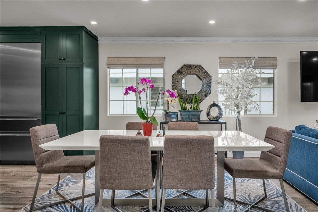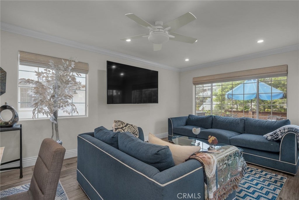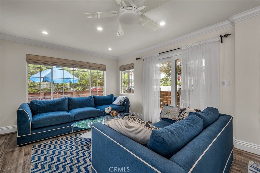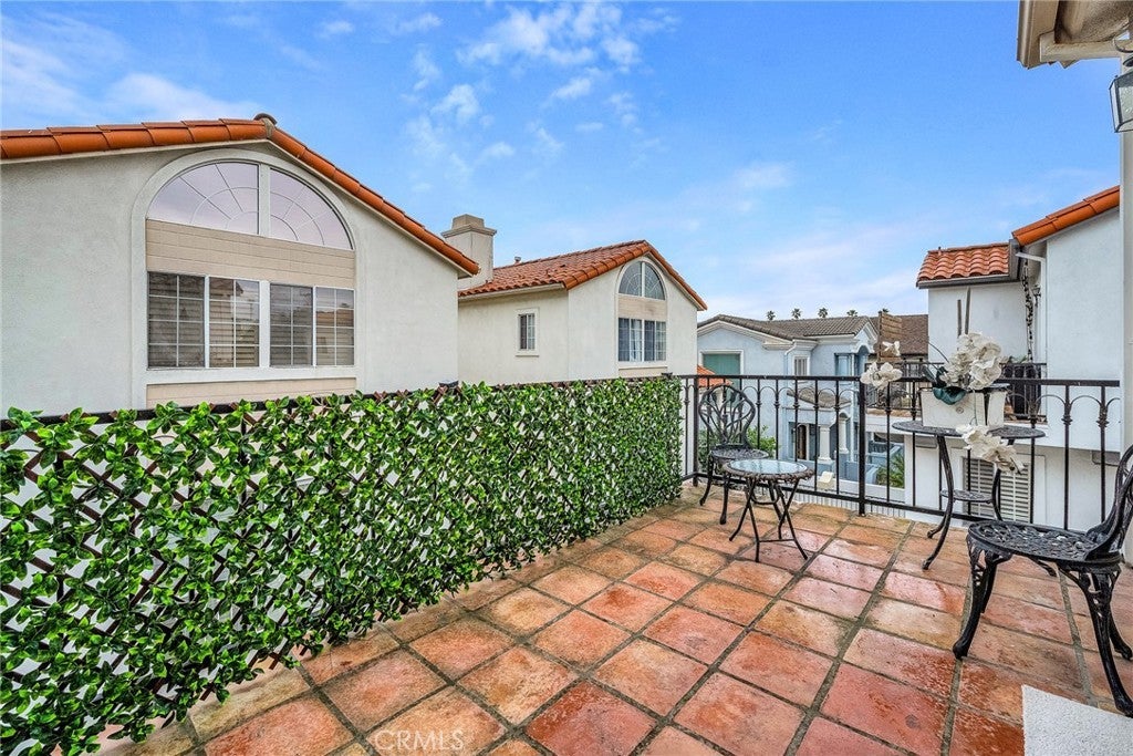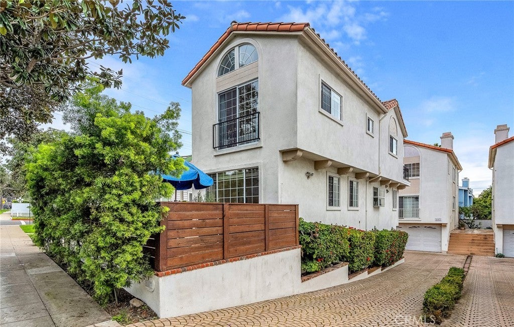 Located less than a 10-minute walk from the beach, this stunning freestanding townhome offers the best of South Redondo living. Lush, mature landscaping provides privacy for the charming Saltillo-tiled front patio, an ideal space for relaxing or entertaining. Inside, a bright double-height entry with skylight welcomes you into a light-filled home designed for comfort and style. The main level features an open-concept layout with easy-care tile flooring and windows on all sides, creating an airy coastal atmosphere. The front sitting area opens directly to the patio, while the spacious dining area flows seamlessly into the newly renovated kitchen. The kitchen is equipped with quartz countertops, Thermador appliances, a striking waterfall island with two beverage chillers, and seating for four—perfect for casual gatherings. A nearby half bath includes a bidet toilet. At the rear of the home, a generous living area is centered around a gas fireplace, ideal for cozy evenings. The lower level includes a bedroom with ceiling fan, dual closets, and a three-quarter bathroom. Upstairs, two additional suites each offer vaulted ceilings, dual closets, ceiling fans, and full bathrooms. The front suite overlooks mature trees, is set back for privacy, and features a sliding glass door and a bathroom with a glass-enclosed shower. A hallway laundry area leads to the luxurious primary suite, which opens to a private Saltillo-tiled balcony and features a spa-like bathroom with jacuzzi tub, glass shower with skylight, double-sink vanity, ample storage, and a walk-in closet. Additional highlights include central air conditioning, a two-car garage with epoxy floors, and a HALO whole-house water filtration system. Ideally located within walking distance to the beach, shops, restaurants, schools, the library, and all that makes the South Bay such a desirable place to call home.