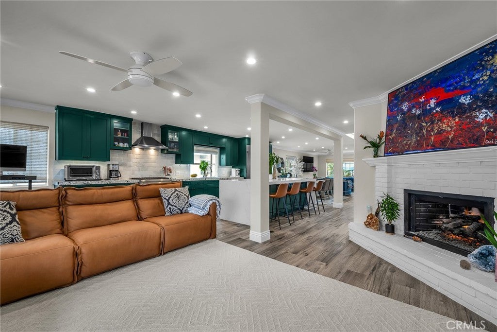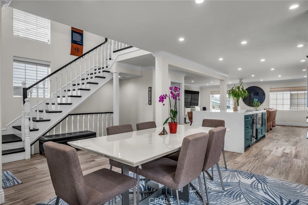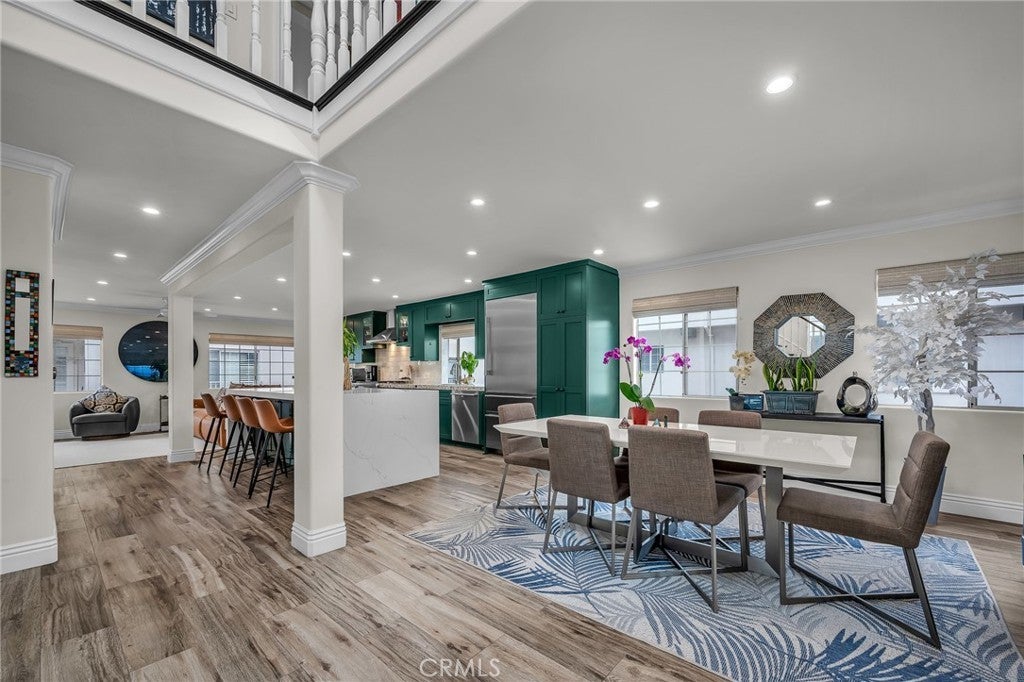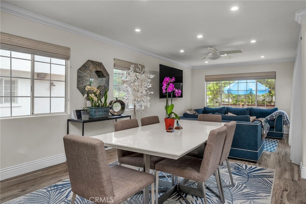 Located less than a 10-minute walk from the beach, this stunning freestanding townhome offers the best of South Redondo living. Lush, mature landscaping provides privacy for the charming Saltillo-tiled front patio, an ideal space for relaxing or entertaining. Inside, a bright double-height entry with skylight welcomes you into a light-filled home designed for comfort and style. The main level features an open-concept layout with easy-care tile flooring and windows on all sides, creating an airy coastal atmosphere. The front sitting area opens directly to the patio, while the spacious dining area flows seamlessly into the newly renovated kitchen. The kitchen is equipped with quartz countertops, Thermador appliances, a striking waterfall island with two beverage chillers, and seating for four—perfect for casual gatherings. A nearby half bath includes a bidet toilet. At the rear of the home, a generous living area is centered around a gas fireplace, ideal for cozy evenings. The lower level includes a bedroom with ceiling fan, dual closets, and a three-quarter bathroom. Upstairs, two additional suites each offer vaulted ceilings, dual closets, ceiling fans, and full bathrooms. The front suite overlooks mature trees, is set back for privacy, and features a sliding glass door and a bathroom with a glass-enclosed shower. A hallway laundry area leads to the luxurious primary suite, which opens to a private Saltillo-tiled balcony and features a spa-like bathroom with jacuzzi tub, glass shower with skylight, double-sink vanity, ample storage, and a walk-in closet. Additional highlights include central air conditioning, a two-car garage with epoxy floors, and a HALO whole-house water filtration system. Ideally located within walking distance to the beach, shops, restaurants, schools, the library, and all that makes the South Bay such a desirable place to call home.