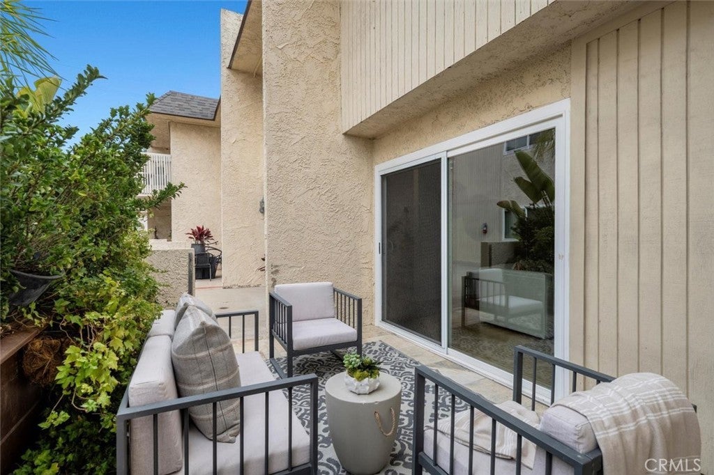 Welcome to #7! This is without doubt a fabulous remodeled townhouse, located in Peppertree Village, a true hidden gem. This sought after, peaceful home features 3 bedrooms, 3 bathrooms, and an enclosed patio, and is nestled amongst lush landscaping and tranquil streams! Entry is through double doors into a spacious light filled living room with gas fireplace and large sun drenched patio off – perfect for entertaining and outdoor living, along with a large dining room area. Adjacent to the dining area is a remodeled, spacious sunny kitchen with stainless steel/ Viking appliances. On the ground floor there is also a laundry room and a powder room. Upstairs the spacious primary suite boasts ample closets and a walk-in closet, with access to a spacious sunny atrium. The second and third bedroom have ample closets, and have some views of city and mountain ranges. The unit also comes with 2 highly desirable oversized spacious end parking spaces the largest spaces on the complex. The townhouse has new flooring, smooth ceilings, ample storage throughout and has been recently remodeled. Peppertree Village is a secure gated complex in a prime location, on a cul de sac street, with a fabulous pool/ spa and generous guest parking spaces. It is close to the beach, the Pier, the Riviera Village, shops and restaurants and is located in a great school district. HOA includes pool and spa, some utilities (water, trash and gas), basic cable, and EQ insurance. Would also make a great rental property. What more could you want?