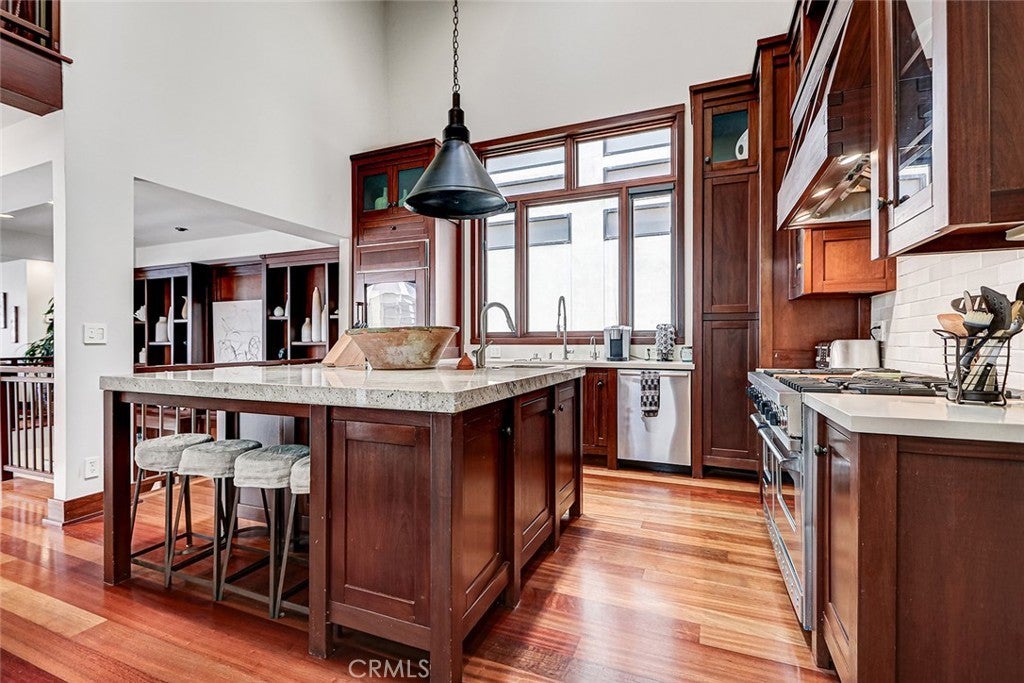Coastal Living Redefined in the Sand Section! This KAA-designed home is a study in modern coastal elegance, defined by sleek architectural lines and understated, contemporary interiors. Perfectly positioned in the prestigious Sand Section, the home is as much a work of art as it is a sanctuary of effortless sophistication. A large front deck with a fireplace and grassy area set the stage for casual gatherings or quiet moments- a unique feature in this coveted neighborhood. A curated palette of rich natural woods warms the elegant interior, while La Cantina doors on every level dissolve the boundaries between indoor refinement and outdoor serenity, inviting ocean breezes and natural light inside. The entry level opens onto a foyer which leads to a den with a private patio, an ensuite bedroom (perfect for guests), and a separate laundry room. The second level houses a formal living room with stone fireplace and balcony, kitchen (featuring a soaring ceiling open to the third floor), Media room with a beautiful built- in bar and desk area) and a full bath. Upstairs, you'll find the primary suite with a Ocean View balcony, an office (overlooking the second level) and two additional bedrooms and full bath Take a look at the floor plan in photos! More than a residence, this home is a modern expression of Manhattan Beach’s lifestyle- where thoughtful design and a profound connection to the coast and nature come together in perfect harmony.