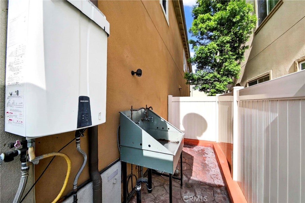 Welcome to the Harbor Highlands Gated Community in San Pedro. This well-appointed residence features an open-concept floor plan and a contemporary kitchen with a spacious center island and bar seating, tile flooring, granite countertops, and stainless steel appliances. The private backyard is uniquely designed with a jacuzzi tub, sink, and two custom shower booths, offering a relaxing outdoor retreat. The primary suite includes a generous walk-in closet and a versatile retreat area suitable for use as a fourth bedroom, nursery, or home office. The en-suite primary bathroom is thoughtfully designed with dual vanities, a water closet, and a separate shower and soaking tub. Two additional bedrooms, a full bathroom, and a laundry room are conveniently located on the same level. Additional features include an attached two-car garage, central air conditioning and heating and a tankless water heater. Water softener in the garage. Community amenities include a pool and spa, ample guest parking, and a prime location near grocery markets, retail shops, restaurants, and parks located directly across the street, with easy access to the 110 Freeway.