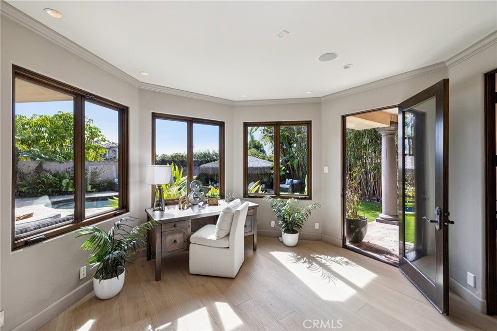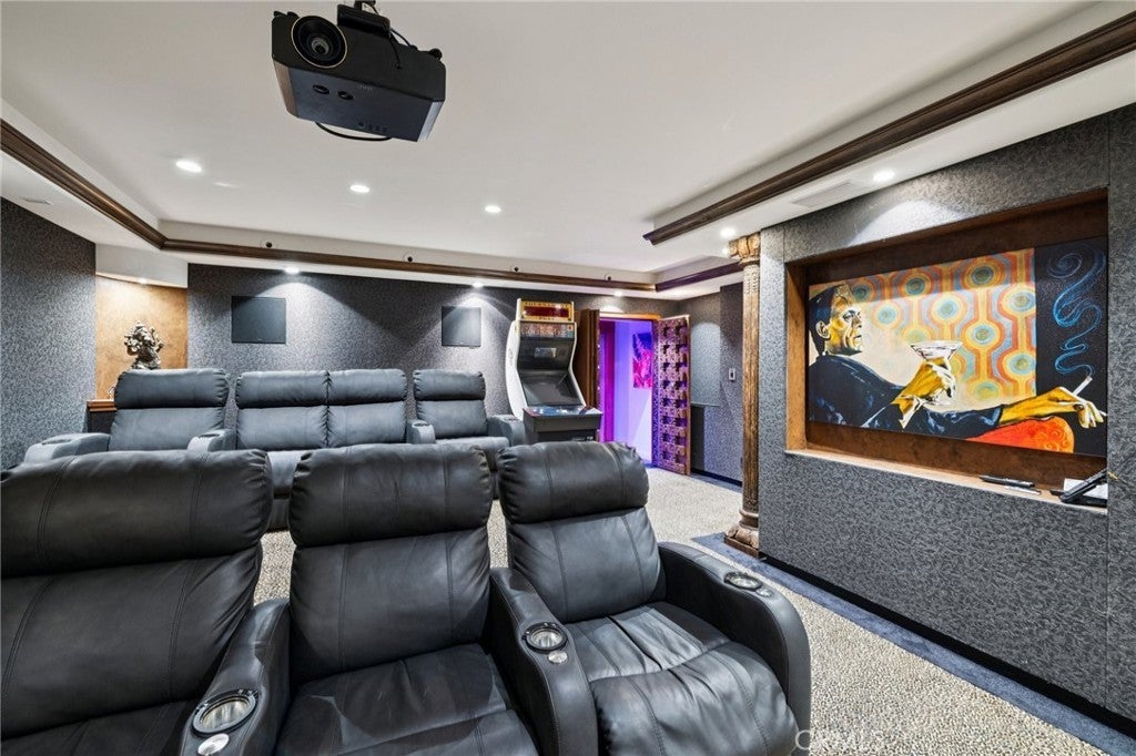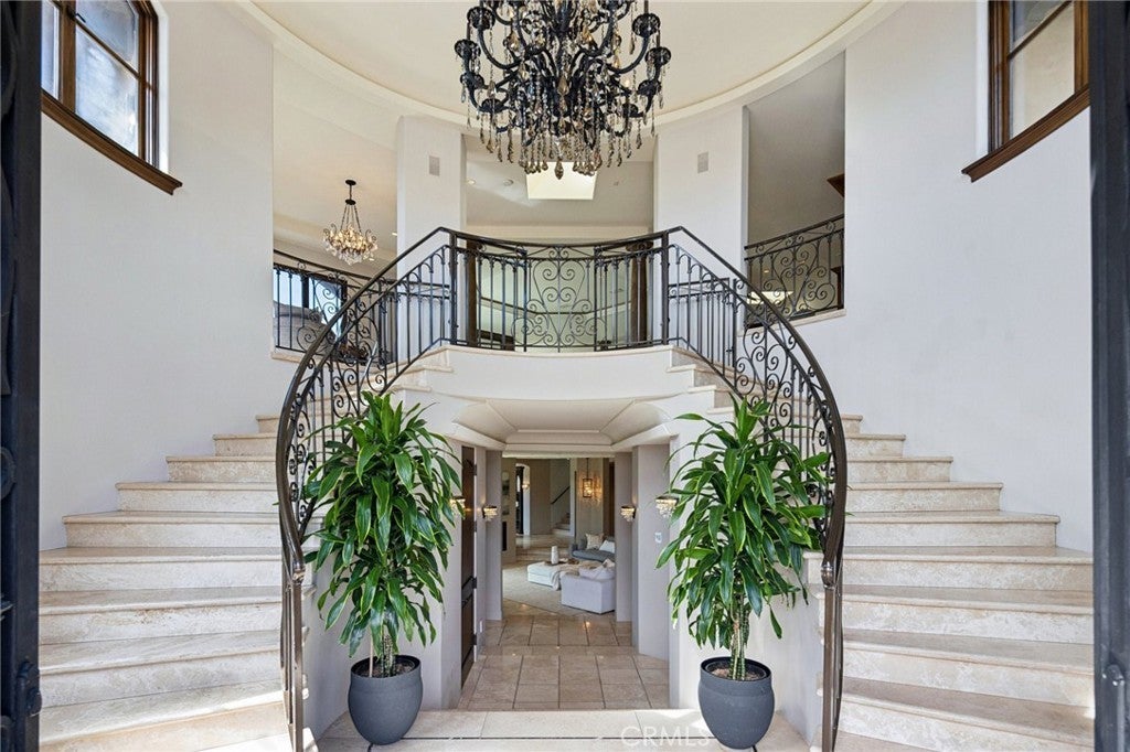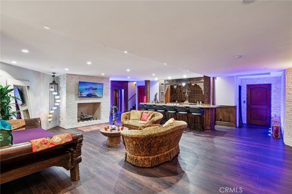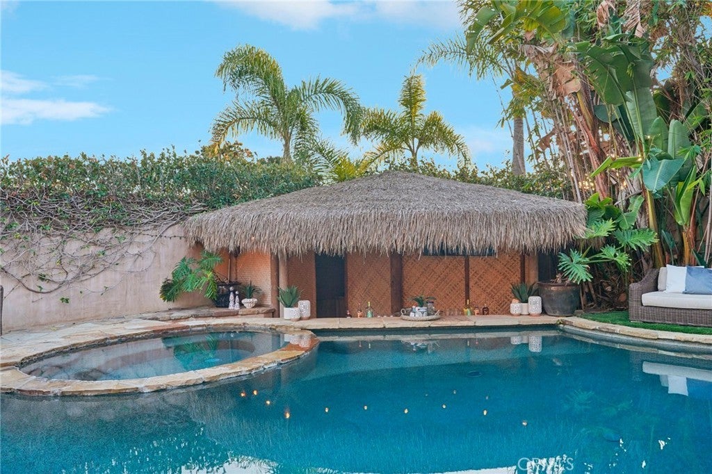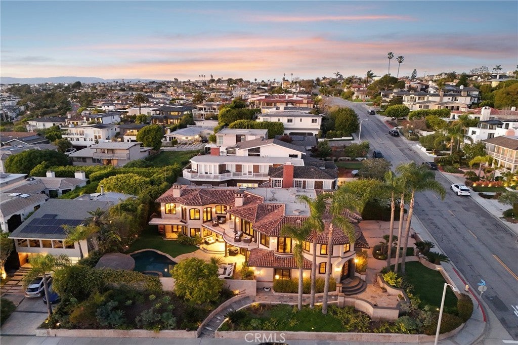 High above the street in the iconic Hill Section of Manhattan Beach, this Southwest-facing corner estate feels like its own private resort—where ocean breezes drift in, sunlight pours through soaring ceilings, and every level delivers a new experience. In a city where space, privacy, and ocean vistas are hard to come by, the Hill Section is one of the few neighborhoods that offers all three—along with a short stroll to the beach, easy access to downtown, and walking distance to award-winning Robinson Elementary. Step inside on the main entry level and the drama begins: dual curved staircases, statement chandeliers, and fresh white oak floors that instantly lighten the mood. Five bedrooms (four ensuite) are thoughtfully positioned alongside a spacious family room and bonus flex space—ideal for homework marathons, movie nights, or a quiet work-from-home escape. Slide outside and you’re transported to a tropical oasis: pool, spa, swim-up bar, tiki hut with grass roof, outdoor fireplace, turf lawn, and bamboo-lined privacy that makes every day feel like a five-star getaway. Upstairs is where life unfolds in grand fashion. The living room opens to a balcony overlooking the lush backyard, while the gourmet kitchen—complete with Sub-Zero refrigeration, Dacor 6-burner range, double warming drawers, two Miele dishwashers, and an expansive granite island—anchors the home with effortless entertaining power. Double butler’s pantries and a built-in work area keep everything running smoothly. A warm library/study with fireplace invites slower moments, while the primary suite is a retreat unto itself: balcony access, dual-entry walk-in closet, soaking tub, dual vanities, and a spa-style shower designed to start and end your days right. Then there’s the level no one sees coming. Take the elevator down and you’ll find a moody, club-inspired escape reminiscent of the Foundation Room at House of Blues—ornate carved doors, ambient lighting, full bar, VIP lounge, theater room, and a vibe that says the night is just getting started. With over 9,000 square feet, six bedrooms, seven baths, multiple living areas, three-car garage, and seamless indoor-outdoor flow, this estate fully captures what makes the Hill Section so sought-after: room to spread out, privacy to unwind, and views that remind you why Manhattan Beach living is in a class of its own. It may feel like a faraway escape. Spoiler alert: it’s right here.