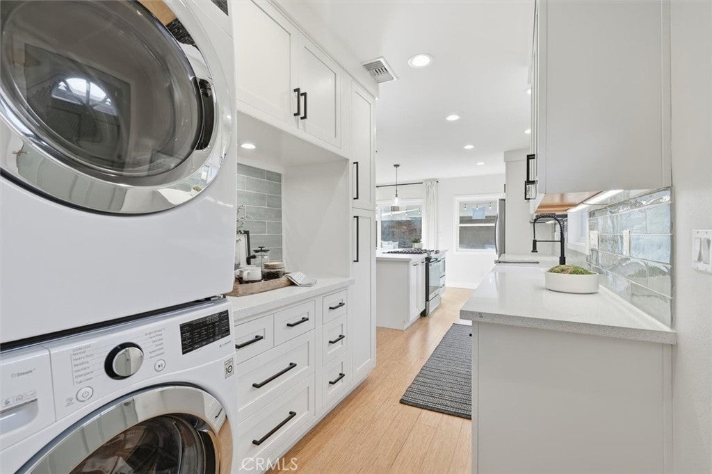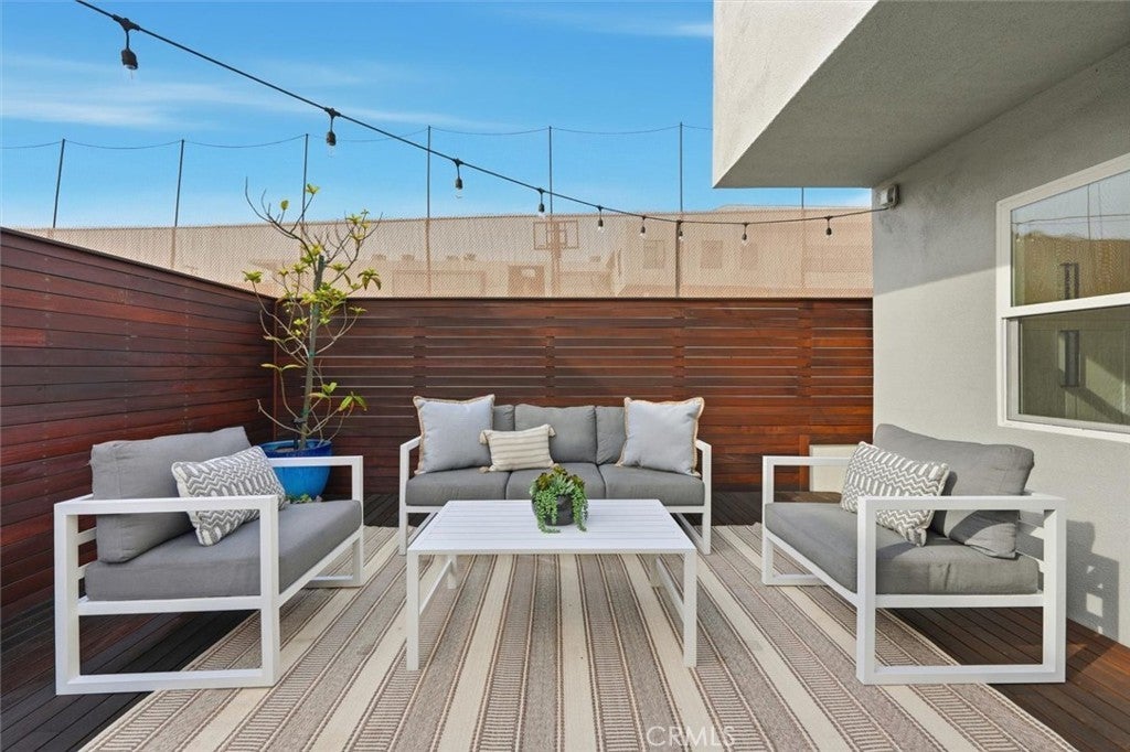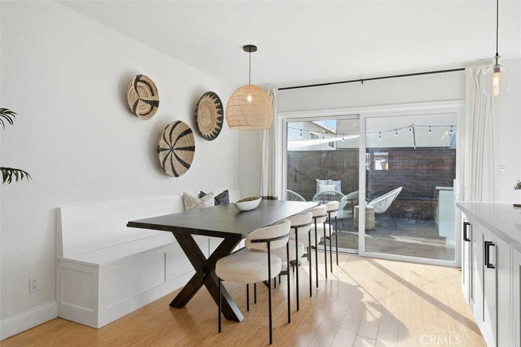 Set on a desirable corner lot in Redondo Beach, this immaculately maintained, thoughtfully updated home has a crisp modern feel and standout indoor-outdoor living. A striking contemporary front door opens to a bright living room with wood floors and a custom crafted TV nook that keeps the space polished and functional. The open layout flows into a beautifully refreshed kitchen featuring new cabinetry and quartz countertops, a farmhouse sink, designer tile backsplash, a spacious center island and a newer cooktop with griddle. A custom coffee nook adds everyday convenience, while built-in seating creates the perfect casual dining area with room for a large table. The bathrooms have been completely redone with fresh tile, paint, updated tub and shower surrounds and new vanities, delivering a clean, elevated look throughout. The downstairs bath showcases a glass shower, hex tile flooring, a floating wood vanity and herringbone tile detail in the shower. Sliding doors open to a custom tropical hardwood (cumaru) deck with built-in seating and plenty of space to grill, relax or gather around a fire pit, complemented by matching cumaru fencing for a warm, modern finish. Upstairs, a bonus space is ideal for an office or playroom and opens to a large patio for an additional outdoor escape. Three upstairs bedrooms feature wood floors, fresh paint and ample closet space, along with custom window coverings that complete the look. Behind the scenes, major upgrades provide comfort and peace of mind: new double-pane vinyl windows throughout, a new central A/C and heating system, new Pex/copper plumbing lines, a hot water recirculation system for instant hot water at every faucet, whole house water filtration, a 200-amp electrical panel and a water heater replaced in 2020. Recessed lighting, a skylight, custom railings and clean horizontal fencing tie it all together—this is a turn-key Redondo Beach opportunity with style, function and upgrades already done.