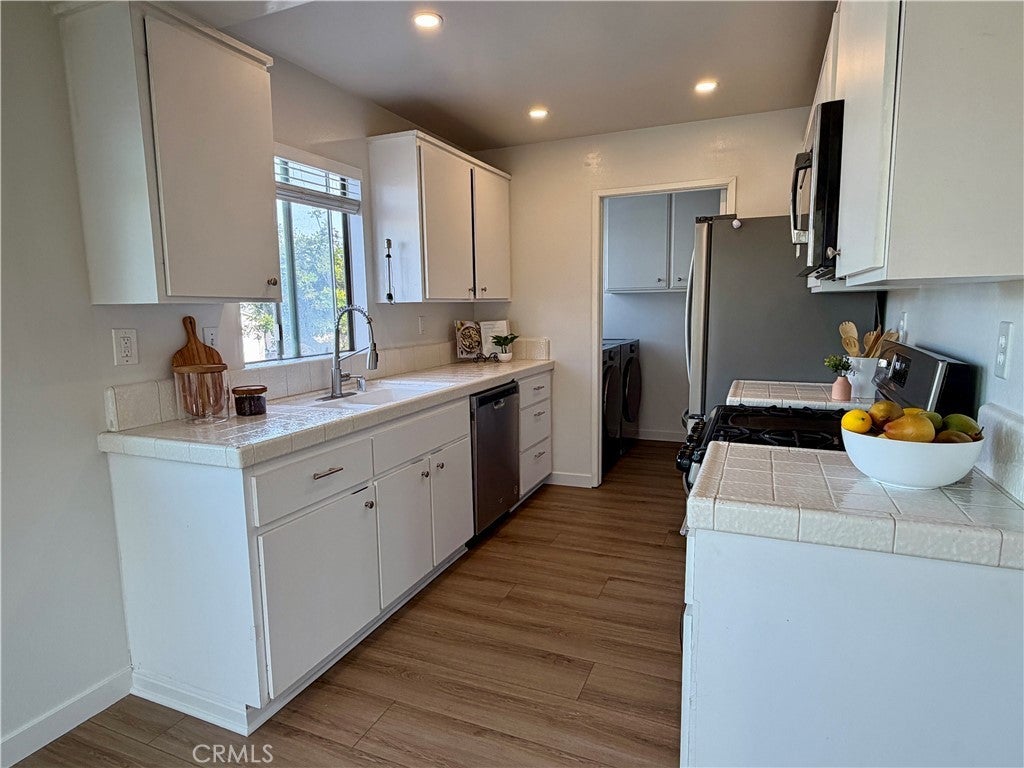 Now available for lease, this beautifully updated 2-bedroom, 2-bath condo is ideally located in the heart of Gardena, offering comfort, style, and convenience. The home features brand-new luxury vinyl flooring, recessed lighting throughout the living areas, and a spacious, light-filled living room with an open and inviting layout. The kitchen is equipped with stainless steel appliances, and the lease includes refrigerator, washer, dryer, and microwave for added convenience. Both bedrooms feature ceiling fans, while the secondary bedroom is enhanced by a new custom closet door. The primary suite offers a walk-in closet and a full en-suite bathroom, with both bathrooms featuring extended vanities and ample storage. A highlight of the home is the large private patio, accessible through a sliding glass door—perfect for indoor-outdoor living. The patio is generously sized to accommodate a 6-person dining table, BBQ, lounge seating, or play area, and is accented with string lighting. The owner is open to leaving the patio furniture, making this an easy move-in option. Additional features include wall-to-wall hallway cabinetry for exceptional storage, a private two-car garage, complete with an additional freezer and storage cabinet, plus two additional parking spaces directly in front of the garage—ideal for guests. Situated in a quiet, well-maintained community of only eight units, this condo offers a peaceful residential setting while remaining close to top Gardena restaurants, grocery stores, shopping, and convenient access to the 110, 91, and 405 freeways. A rare lease opportunity combining space, storage, and location—this home is not to be missed.
