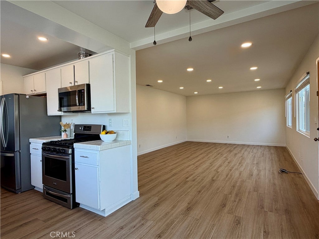 Breakfast Area, Ceiling Fan(s), Recessed Lighting, Storage, Tile Counters, Unfurnished, Main Level Primary, Primary Suite, Walk-In Closet(s)