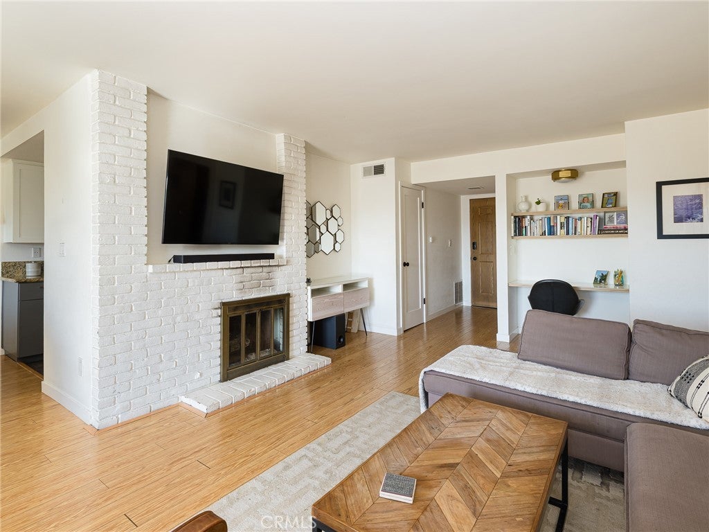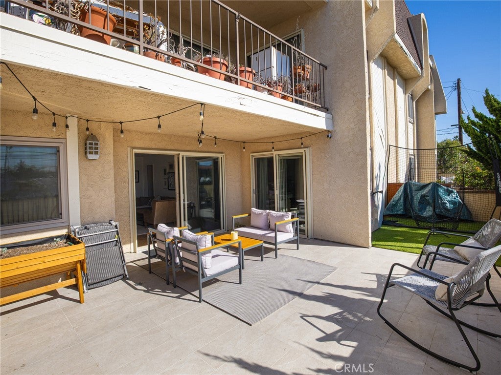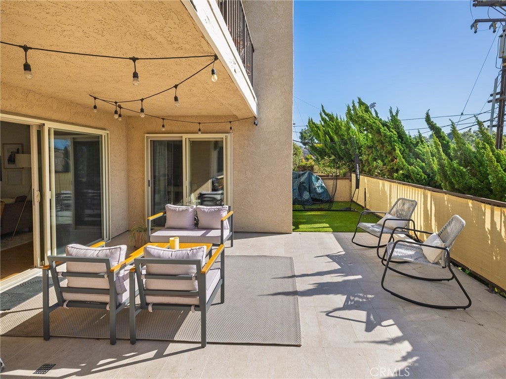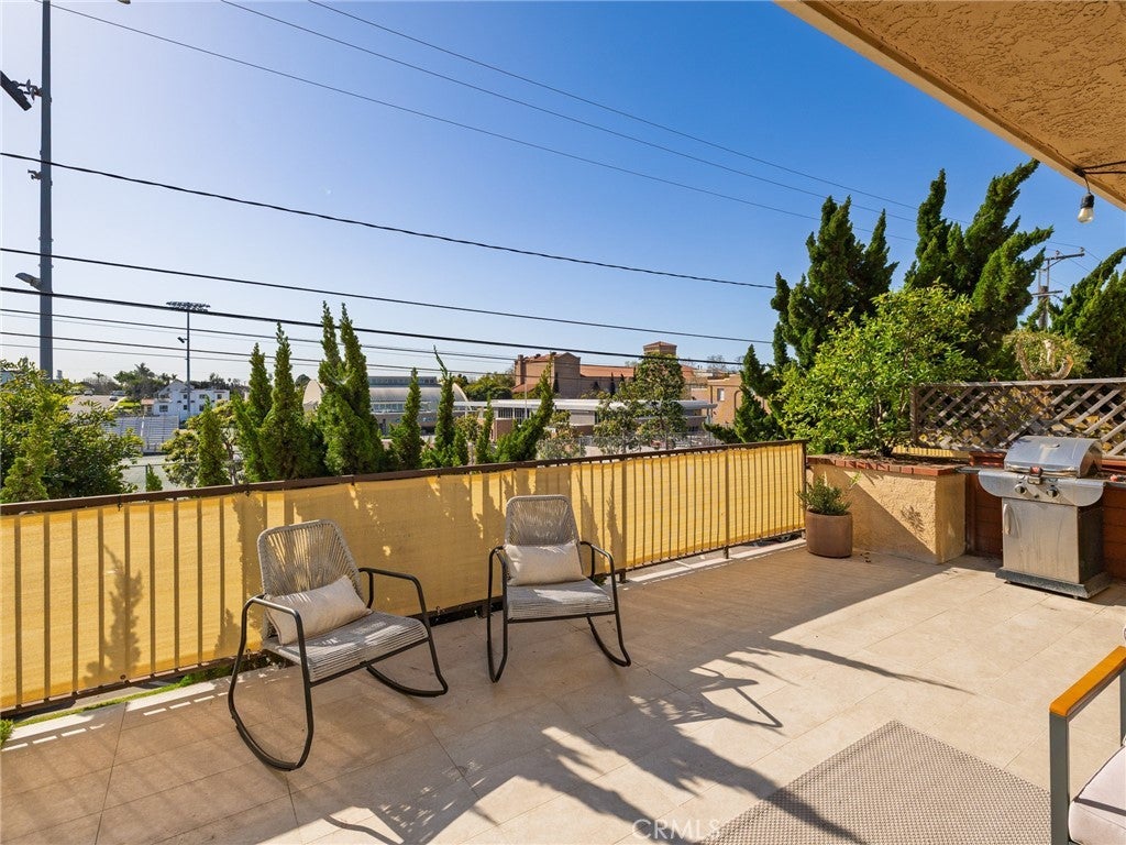 South-facing residence with an expansive deck and updated interior! This first floor, beautifully maintained home features a generously-sized living room with a gas fireplace. The living room flows directly to the elevated, ~500 square foot deck—ideal for indoor-outdoor living and entertaining. The galley kitchen and light-filled dining area sit adjacent to the living room. The kitchen is equipped with a 4-burner gas stove, dishwasher, and ample cabinetry. A dedicated laundry room with abundant storage space sits off the kitchen. The sleeping quarters of the home feature two bedrooms and two bathrooms updated with new vanities. The primary bedroom offers excellent natural light, two closets (including a walk-in with built-ins), an en-suite bathroom with a huge shower and dual vanities, and direct access to the expansive deck. The second bedroom also includes custom built-in features and sits adjacent to the updated, full bathroom. The home also features double-paned windows throughout, is located across the street from the distinguished El Segundo High School, and sits just minutes away from local dining, shopping, and parks. This home offers a rare combination of space, light, and exceptional indoor-outdoor living in a highly desirable setting!