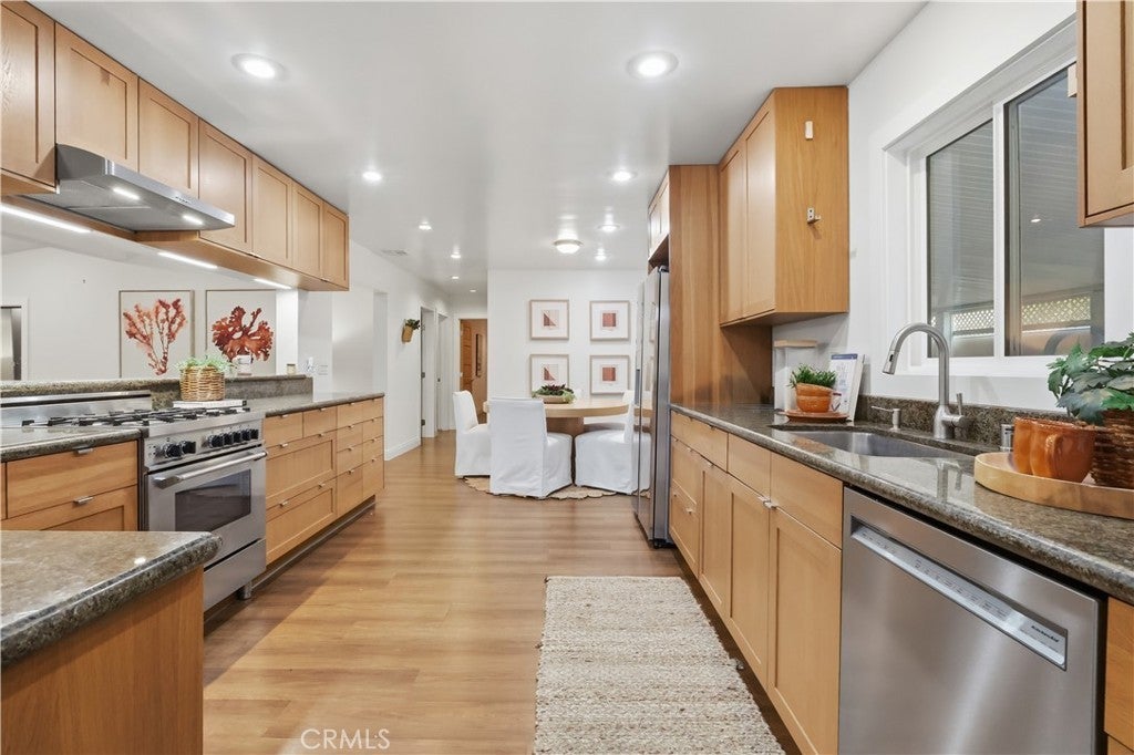 Capture unforgettable sunrises, peek ocean views, and serene greenbelt scenery from this move-in-ready home, ideally located on a private cul-de-sac in the highly sought-after South Shores neighborhood of Palos Verdes Shores. Thoughtfully remodeled, the home features an open floor plan with an expanded kitchen and dining area, built-in cabinetry, soaring ceilings, and abundant natural light from walls of glass, skylights, and recessed lighting. Recent upgrades include a newer roof, ducting, upgraded windows and doors, high-quality wood laminate flooring, new pavers, and a newly tiled deck and landscaped lawn. The spacious dining and family room open seamlessly to an oversized outdoor tiled deck and porch, perfect for relaxing or entertaining. The primary bedroom offers beautiful views and a spa-inspired bathroom with a walk-in shower with "his and her" shower stations. Generous closets, ample storage, and storage sheds provide exceptional functionality. The approximately 80'x70' lot offers a peaceful yard overlooking mature trees and lush foliage, creating a tranquil, private setting. Extra parking is conveniently located near the home. Palos Verdes Shores is a 24-hour guard-gated community offering true resort-style living, with coastal trail access, an exclusive 9-hole golf course, tennis courts, swimming pool, hot tub, fitness center, sauna, dog parks, and car wash. The recreation center features lounges, a banquet hall, billiards, a restaurant-style kitchen, piano, stage, and shuffleboard. Enjoy monthly activities including golf league, water aerobics, yoga, meditation, mahjong, pickleball, and more. An on-site beauty salon offers hair, massage, and nail services. Ideally located near fine dining, shopping, grocery stores, golf courses, and luxury resorts—just minutes from downtown, LA and LAX—this home offers the perfect blend of comfort, convenience, and resort living. Coastal living at it's finest!