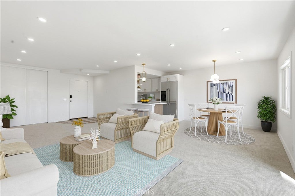 Welcome home to this newly renovated, light-filled condo tucked away in a tranquil Rancho Palos Verdes neighborhood. This move-in-ready 2-bedroom, 2-bath single-level residence offers a spacious open-concept layout bathed in natural light, seamlessly connecting the living, dining, and kitchen areas—ideal for both everyday living and entertaining. Recent upgrades create a crisp, modern feel throughout, including fresh interior paint, new carpeting, recessed lighting, updated electrical and plumbing, and stylish tile flooring in the kitchen, bathrooms, and entryway. The beautifully refreshed kitchen features quartz countertops and contemporary finishes that blend style and functionality. A newly installed mini-split system provides efficient, year-round comfort. Situated as a quiet corner unit toward the back of the building, the home enjoys a peaceful setting with pleasant treetop views. The open living area extends to a private balcony—perfect for morning coffee or relaxing outdoors. Located in a secure, well-maintained complex, the unit includes one assigned parking space with a private storage locker in the gated garage. Community amenities include a swimming pool, elevator access, secured entry, and convenient laundry rooms on each floor. Set within the award-winning Palos Verdes Unified School District and just minutes from Peninsula Center shopping, dining, and everyday conveniences, this beautifully updated condo offers an ideal blend of comfort, location, and the coveted Peninsula lifestyle.