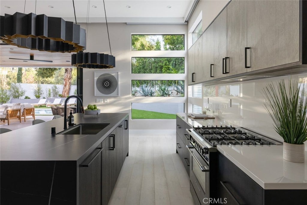A rare opportunity to lease a fully reimagined single-story home on a flat lot in Woodland Hills! This stunning 3-bedroom, 3-bathroom residence offers 2500 square feet of meticulously redesigned living space, rebuilt from the ground up to deliver modern luxury at every turn. Soaring 13-foot ceilings throughout the home create an airy, expansive atmosphere throughout, while the seamless indoor-outdoor design blurs the line between interior comfort and alfresco living. The custom kitchen features built-in appliances and flows effortlessly into the entertaining spaces, making it ideal for hosting. Smart home technology elevates the experience with whole-home Hue lighting (inside and out), built-in sound, and electric blinds—adjust the ambiance with the touch of a button. Each of the three custom bathrooms showcases thoughtful design and premium finishes. Outside, the nearly 16,000-square-foot lot provides rare space and privacy. Enjoy resort-style amenities including a pool, spa, and built-in BBQ—perfect for year-round outdoor entertaining. This prime Woodland Hills locale places you so close to the Valley's new central hub of dining, shopping and entertainment that Warner Center has to offer, not to mention easy freeway access, less than 30 mins to Malibu and less than 1 mile from one of the Valley's highly accredited elementary schools, Woodland Hills Charter Elementary. Home is new and no one has lived in it before. This home truly has it all and is a must see!