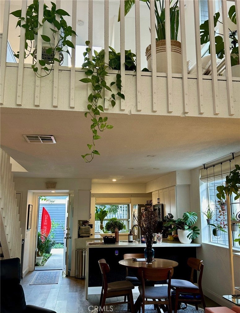 Welcome to Pine Creek Lane—where comfort meets convenience in one of Los Angeles County’s most coveted neighborhoods. This charming 1-bedroom, 1-bath end-unit condo offers 849 sq. ft. of thoughtfully designed living space filled with natural light. Step inside to an open-concept layout with ceiling-to-floor windows and wood flooring throughout the downstairs, creating a warm and inviting atmosphere. The living space flows seamlessly into the kitchen, ideal for everyday living and entertaining. Home features include: • 1 bedroom | 1 bathroom end-unit condo • 849 sq. ft. of open, light-filled living space • Ceiling-to-floor windows and wood flooring downstairs • Cozy open living area connected to the kitchen • Kitchen with white cabinetry, generous counter space, and raised breakfast bar seating • Dual-basin sink, stainless steel electric range with hood, duel sided refrigerator, dishwasher, and recessed lighting • In-unit washer and dryer conveniently located in a closet • Upstairs primary bedroom with vaulted ceilings and skylight • Primary bath with makeup area, operable window, separate toilet room with cabinets, tiled shower-over-tub, and walk-in closet Enjoy HOA-maintained grounds featuring meandering streams, lush landscaping, and mature trees. Two dedicated parking spaces are included, along with walkable access to the beautifully landscaped HOA pools and spa. Centrally located just off Pacific Coast Highway. Don’t miss your opportunity to make Pine Creek Lane your private sanctuary. Furniture, appliances, and select plants are included without seller’s or manufacturer’s warranty. INDULGE IN LUXURY COMFORT IN THIS STUNNING END UNIT CONDO. UNWIND ENDLESS ENTERTAINMENT ON THE BRAND-NEW (6months new) BIG SCREEN TV IN THE LIVING ROOM.