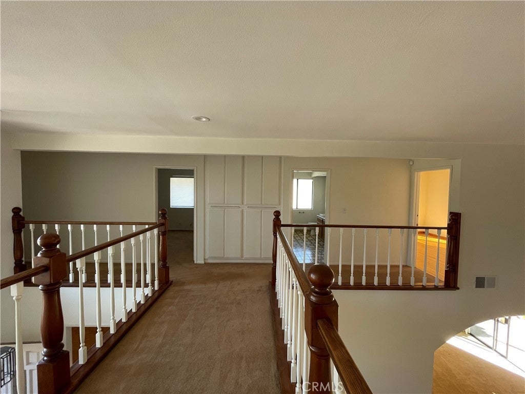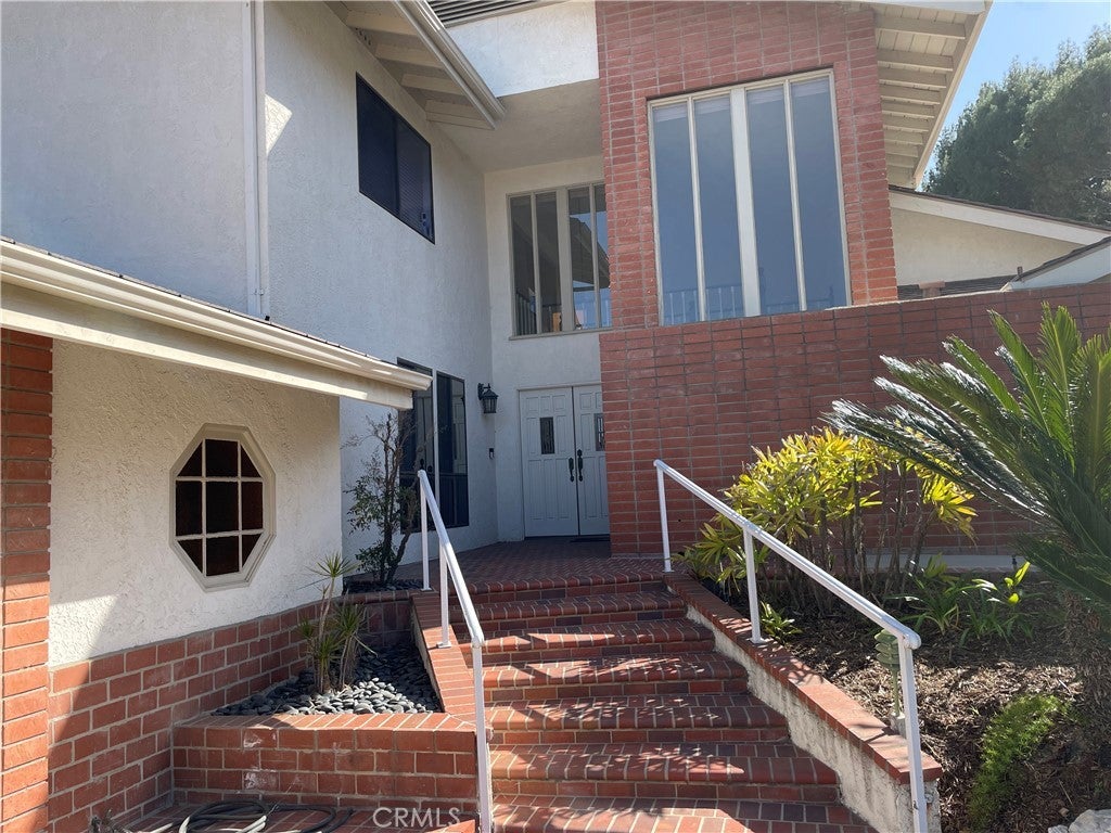 Spacious, sun-filled single-family home situated on a quiet cul-de-sac in Rolling Hills Estates. This expansive 3,500+ sq ft, two-story residence offers 4 bedrooms, including a desirable primary suite on the main level featuring a gas fireplace and walls of windows that fill the space with natural light. Designed for both everyday comfort and entertaining, the interior includes a bar with a fireplace and direct access to a shaded outdoor area equipped with water and gas hookups—ideal for hosting gatherings. The kitchen is thoughtfully appointed with dual ovens, generous counter space, a built-in microwave, and an electric cooktop. A striking staircase near the entry is flanked by large windows, creating a bright and inviting ascent to the upper level. Upstairs, you’ll find three additional bedrooms and a full bathroom, all overlooking the expansive backyard. The outdoor space features a flat grassy area that transitions into a lush, gently sloping hillside, offering privacy and scenic views. An upstairs balcony provides a peaceful vantage point to enjoy the surrounding landscape. Residents enjoy access to nearby horse trails, perfect for equestrian enthusiasts or leisurely morning walks. Ideally located at the base of Rolling Hills Estates, this home offers a rare blend of natural tranquility and convenient city access—just minutes away.