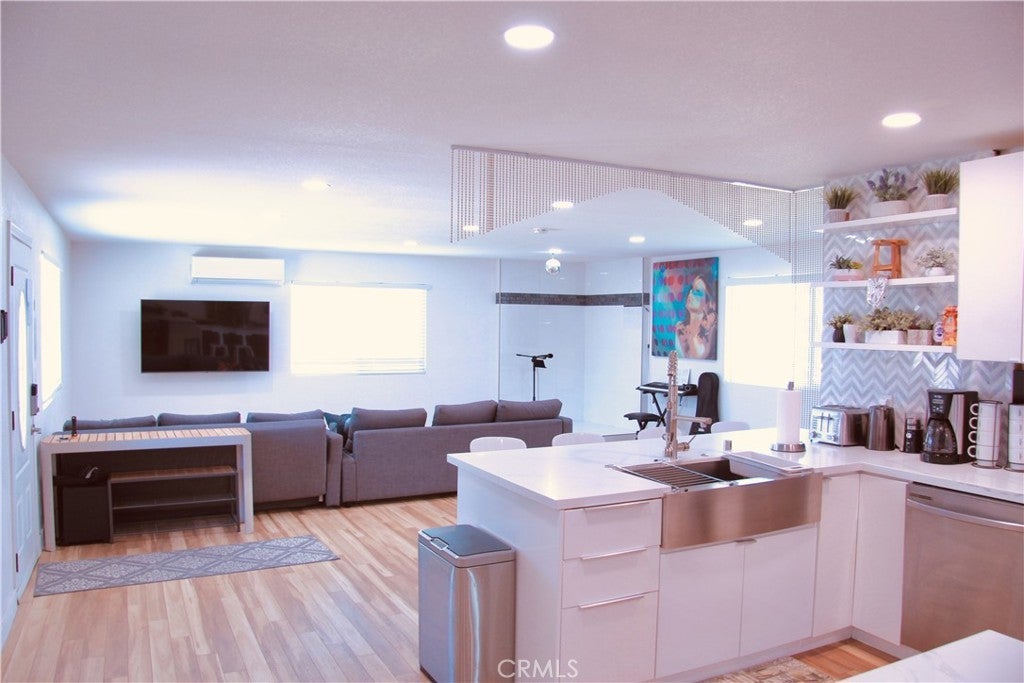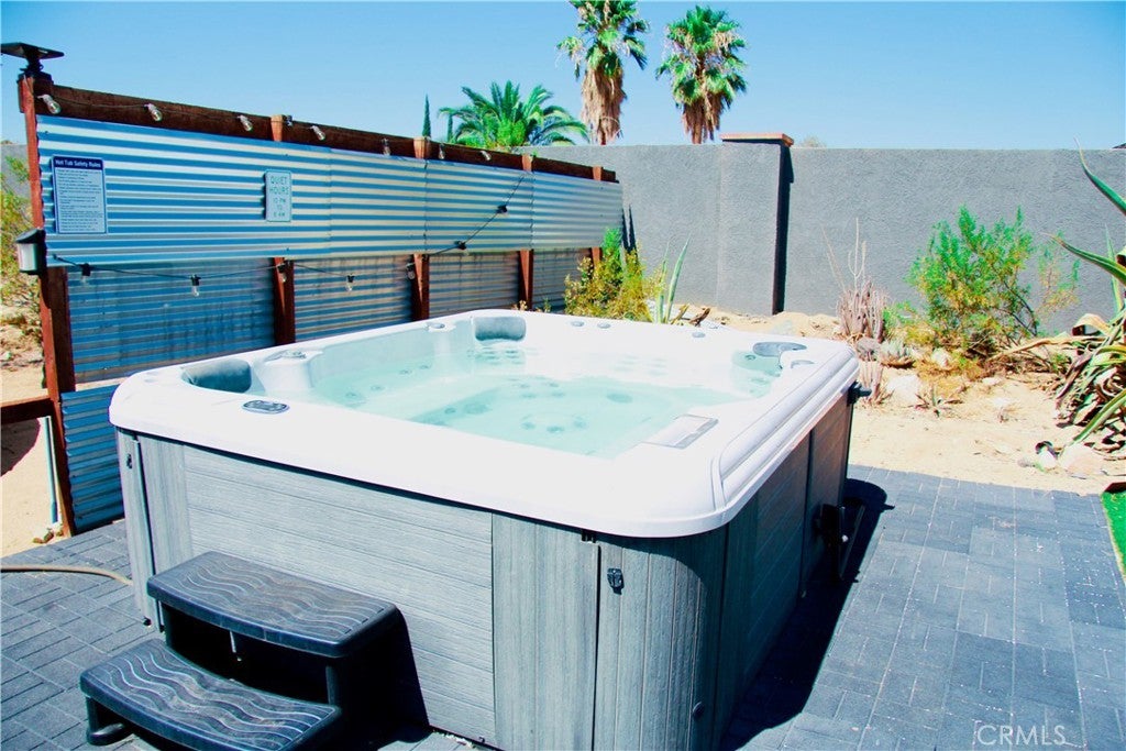 This meticulously updated and fully furnished property in Joshua Tree offers the perfect blend of modern luxury and natural beauty, making it an ideal primary residence, vacation home, or short-term rental investment. Step inside this 3-bedroom, 2-bathroom home and discover a sanctuary designed for comfort and relaxation. The fully renovated kitchen boasts quartz countertops, stainless steel appliances, and even two TVs built into the backsplash so you can enjoy your favorite shows while you cook. The large island flows seamlessly into the bright and spacious living area, complete with recessed lighting, a cozy fireplace, and expansive windows that frame the stunning desert landscape. For entertainment, there's even a fun karaoke corner. Each bedroom provides a peaceful escape with cooling fans and hardwood floors. The converted garage offers a dedicated playroom for kids, ensuring peace and quiet for everyone. Explore the indoor 3D tour to truly experience this dream setting. Situated on a spacious corner lot, the expansive outdoor space is an entertainer's dream. Enjoy the desert sun by the pool and spa, gather around the outdoor fire pit, or host dinner parties on the covered patio. The fully secure and fenced backyard provides peace of mind. This home also features energy-efficient systems, solar panels and an EV charger, adding to its modern appeal. Plus, it's just minutes from Joshua Tree National Park. With its full renovation, desirable location, and excellent revenue potential, this property is a truly remarkable investment. Don't miss this opportunity to own this turnkey desert oasis.