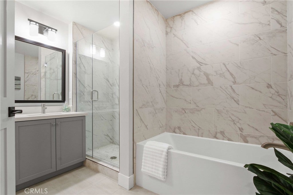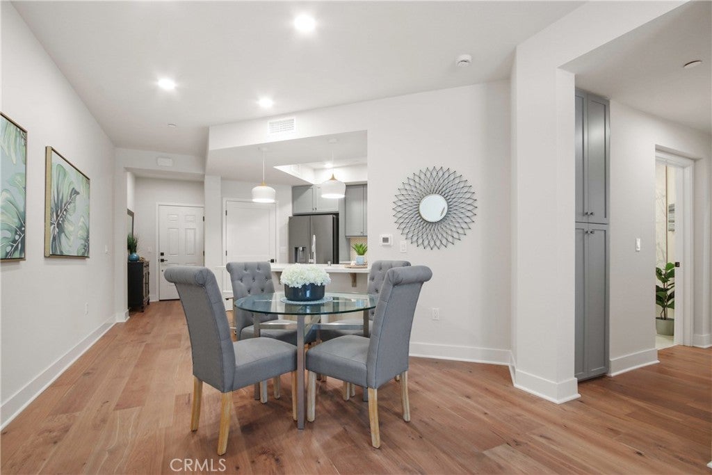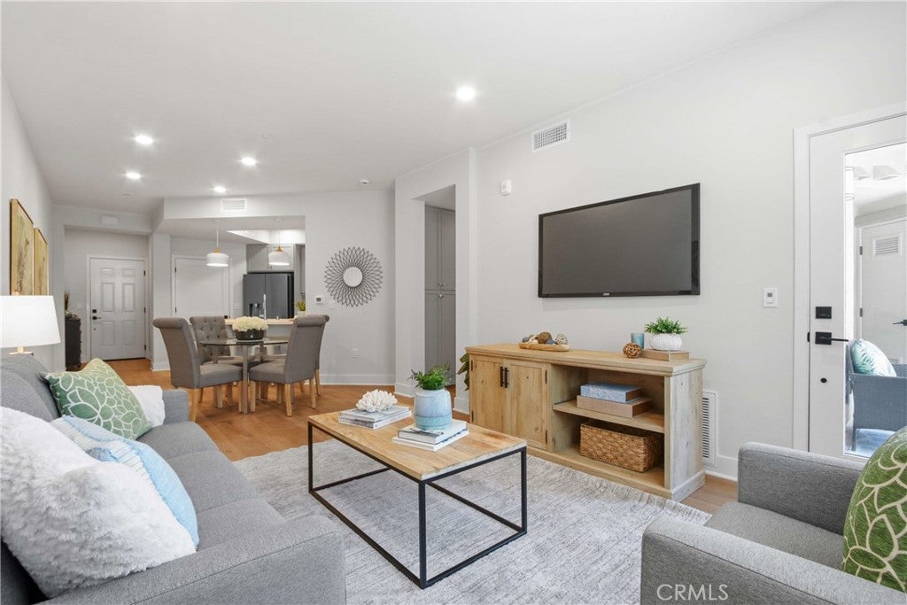 La Sevilla is a brand-new collection of 75 upscale single-level condominiums in the prestigious Rolling Hills Estates, seamlessly combining comfort, simplicity, and modern design. Plan D is a 1-bedroom 1-bath home featuring an open concept living and dining area that flows effortlessly onto a private balcony, creating a perfect blend of indoor relaxation and outdoor enjoyment. The home showcases elegant finishes, including wide-plank hardwood flooring throughout, quartz countertops, a full tile backsplash, and a premium LG stainless-steel appliance package with a French-door refrigerator, built-in microwave, gas range with AirFry, and dishwasher. The spacious primary suite includes a luxurious bathroom with a glass-enclosed shower, bathtub, quartz counters, designer porcelain tile, and stylish stainless-steel accents. Residents have access to a grand courtyard with inviting sitting areas and a dual fireplace, as well as a modern fitness center, remote-work lounge, community room, and a barbecue area with a firepit—ideal for gatherings and leisure. Situated on the scenic Palos Verdes Peninsula, La Sevilla offers the tranquility of a high-end neighborhood combined with exceptional walkability. Just steps away are Peninsula Center shops, the public library, grocery stores, coffee shops, and a variety of local restaurants. Additionally, the community is minutes from scenic hiking trails and the stunning beaches of Palos Verdes, making it easy to enjoy outdoor adventures and coastal beauty. *Images are of model home. Furnishings are not included in the sales price.