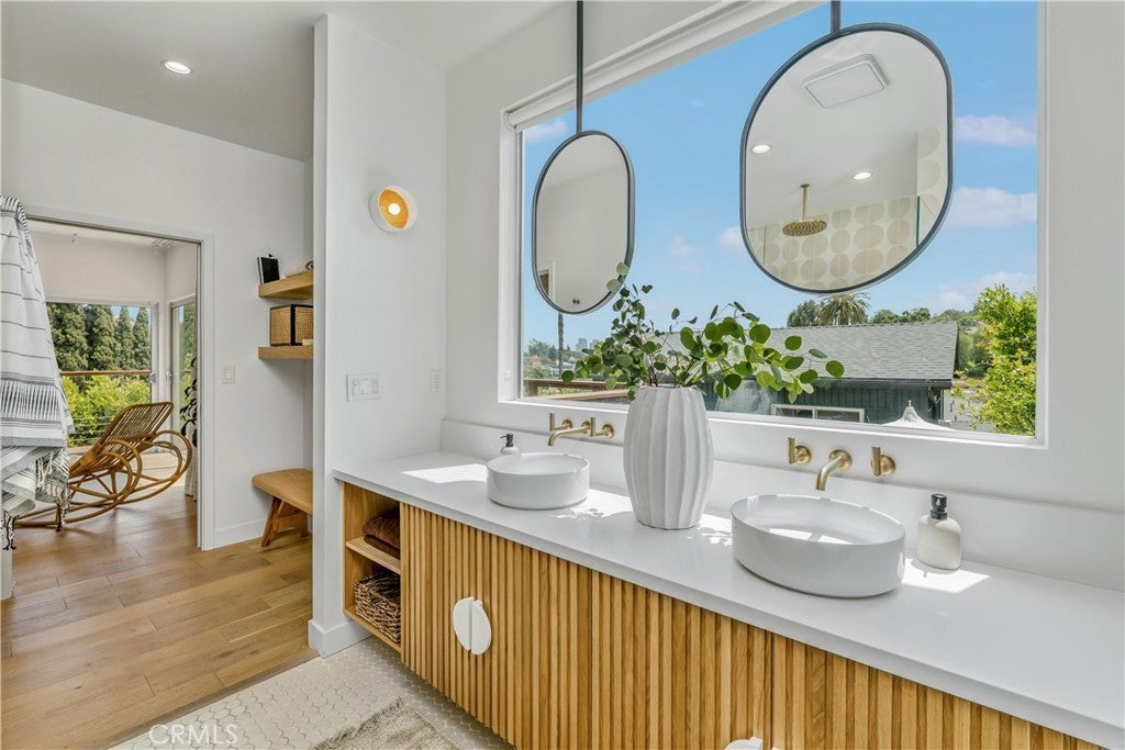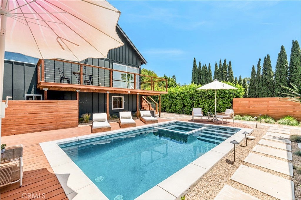 SFR + ADU + POOL + VIEWS! Welcome to 2238/40 Ewing St, a stunning modern retreat that combines high-end design, smart technology, and resort-style living in one beautifully appointed property. Featuring vaulted ceilings, skylights, custom finishes, and white oak flooring throughout, the home is equipped with keyless Yale locks, a Vivint security system, and an Nest thermostat for ultimate comfort and peace of mind. The chef’s kitchen boasts top-of-the-line Thermador appliances, a wine fridge, terrazzo countertops, a stainless steel farmhouse sink, and a spacious island with seating. The luxurious primary suite offers downtown LA skyline views, pool access, a walk-in closet, and a spa-like bath with dual rain showers and WinZo sinks. Additional highlights include a Jack and Jill bathroom for guest rooms, a detached ADU with full kitchen and in-unit laundry, a versatile office/pool room, and a loft ideal for a playroom, studio, or meditation space. Outdoor living shines with a pool, spa, Brazilian redwood decks, and multiple lounge and dining areas—all behind a gated driveway with parking for up to four cars. Located in the heart of trendy Silver Lake, you're just minutes from some of LA’s best restaurants, boutique shopping, weekly farmers markets, and the vibrant energy of Sunset Junction. You just have to see it for yourself!