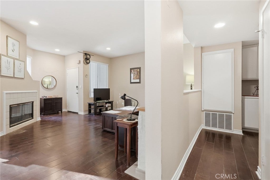 A Stylish San Pedro Retreat in Harbour Walk Awaits You! Discover the perfect blend of comfort, style, and Southern California charm in this beautifully updated Harbour Walk townhome. With 2 spacious bedrooms, 2.5 bathrooms, and 1,429 sq. ft. of thoughtfully designed living space, this home is your ticket to easy, elegant living. Step inside and be welcomed by rich hardwood floors, soaring ceilings, and sophisticated finishes that create a bright, open, and contemporary vibe. The inviting living room features a cozy fireplace and recessed lighting, seamlessly flowing into a dining area and a kitchen that opens to a private patio—ideal for relaxing evenings or entertaining under the San Pedro sky. The remodeled kitchen is a chef’s delight with gleaming quartz countertops, stainless steel appliances, and sleek cabinetry that offers plenty of storage and prep space. Whether it's a quiet dinner or a lively BBQ, this home is made for making memories. Upstairs, you'll find two generously sized primary suites, with 2 ample closet spaces each (2nd bedroom one is walk in) and stylish en-suite baths, one with double sinks — perfect for privacy, guests, or even a home office setup. Additional highlights include in-unit laundry, updated flooring throughout, air conditioning, and an enviable ground-level location near the entrance for easy access. Plus, you’re just steps away from the community pool and spa! Harbour Walk offers a vibrant lifestyle with nearby parks, shopping, dining, and all that San Pedro and the scenic South Bay have to offer—from the LA Waterfront to the Palos Verdes Peninsula. This is more than a home—it’s a lifestyle upgrade waiting for you.