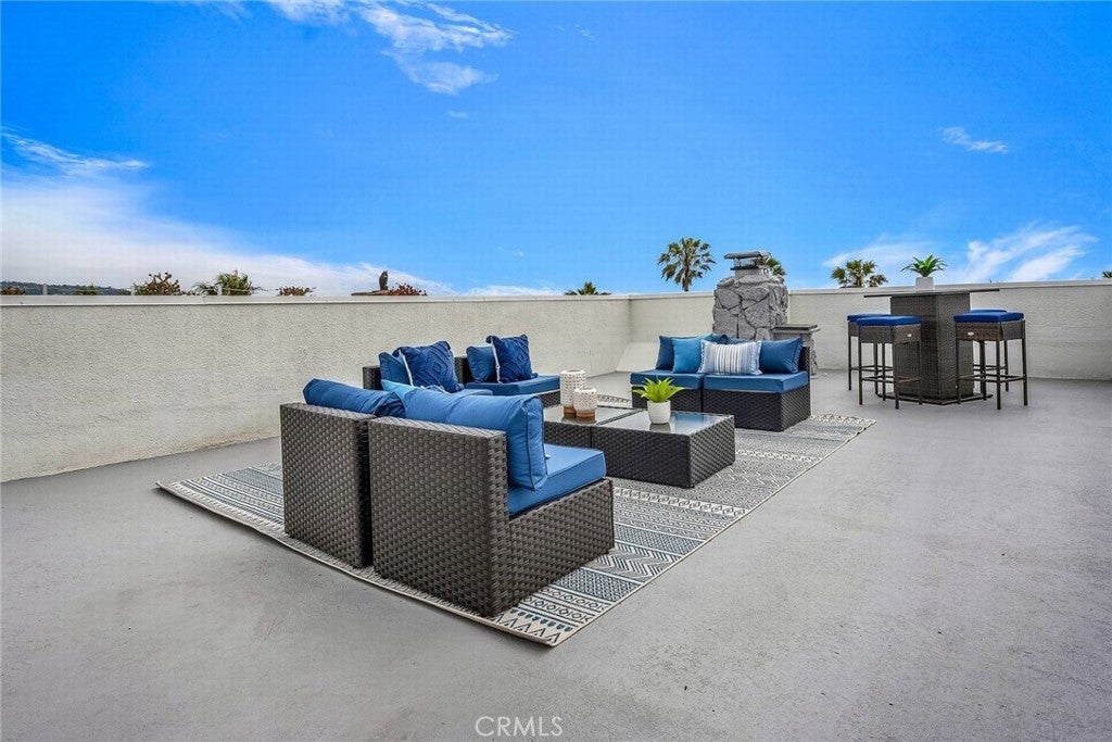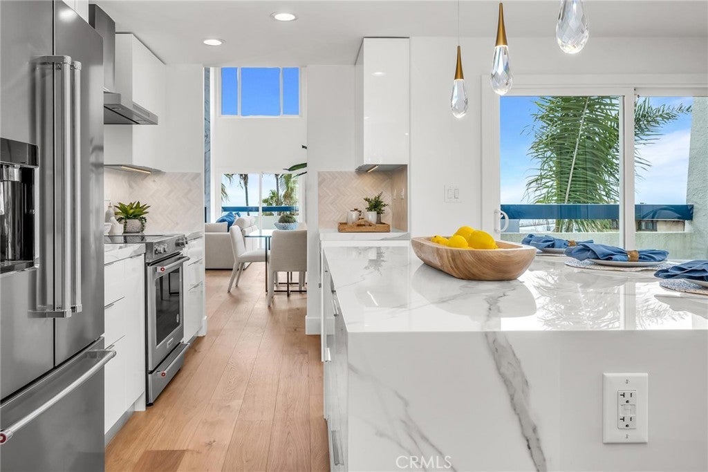 Rare ocean-view penthouse perched above the Pacific along the South Redondo coastline. Few residences offer this level of scale, light, and ocean presence presenting an extraordinary opportunity to own a truly distinctive penthouse along the South Bay coastline. Designed for those who appreciate architectural volume and refined coastal living, this exceptional top-floor residence delivers both sophistication and serenity just moments from the sand. Sunlight pours through the expansive interior, where soaring 18-foot ceilings and panoramic ocean vistas create a dramatic yet welcoming atmosphere. Wide-plank wood flooring and an open-concept layout provide effortless flow for both everyday living and elevated entertaining. The gourmet eat-in kitchen is thoughtfully curated with all-new appliances, custom cabinetry, sleek countertops, and an expansive island ideal for gathering. An adjoining flex space with a built-in bar and wine fridge transitions seamlessly into a formal dining area, media lounge, or game room. Anchoring the living space, a floor-to-ceiling stone LED fireplace introduces warmth while enhancing the home’s architectural presence. Two private balconies invite peaceful mornings and sunset evenings, while the expansive rooftop terrace sets the stage for unforgettable entertaining under the coastal sky, a true extension of the living experience. The primary suite serves as a luxurious private retreat, complete with dual spa-inspired bathrooms. A main-level guest bedroom with its own full bath provides ideal separation for visitors or multi-generational living, while the third bedroom features a walk-in closet and beautiful vistas. Additional highlights include custom lighting, integrated closet systems, and a full-size LG washer and dryer. Residents of Catalina Towers enjoy access to a fitness center, sauna, outdoor hot tub, gated garage with side-by-side parking, and additional storage. Perfectly positioned across from Veterans Park and the weekly farmers market, and just moments from Riviera Village, the beach, and the iconic Strand, this is coastal living at its most elevated. For buyers seeking a residence that combines presence, privacy, and panoramic beauty, this penthouse delivers.