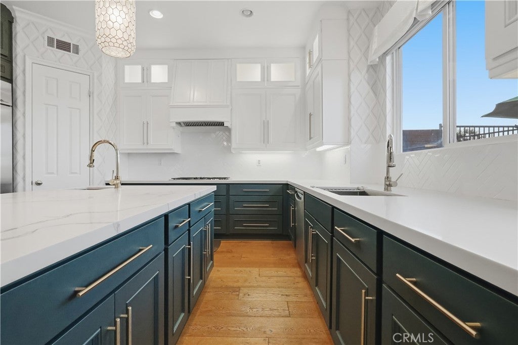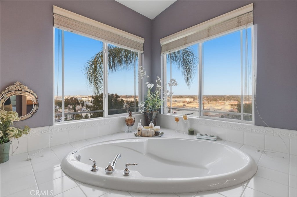 Nestled at the end of a quiet cul-de-sac within an exclusive gated community, this exceptional five-bedroom executive home offers privacy and sweeping views of the San Gabriel Mountains. Built in 2003 and thoughtfully upgraded, the residence blends timeless design with modern comfort. The gourmet kitchen features premium stainless steel appliances, double ovens, quartz countertops with marble veining, dual sinks, gold accents, lighted cabinetry, a walk-in pantry, and an abundance of cabinetry for optimal storage and functionality. The versatile floor plan includes a main-level ensuite bedroom, rich hardwood flooring, two fireplaces, formal dining room, and expansive living spaces filled with natural light. A dedicated laundry room with built-in storage and utility sink adds everyday convenience. Upstairs offers two additional ensuite bedrooms and a spacious primary suite positioned to capture mountain views from its windows. The primary bathroom showcases an oversized vanity area with extensive storage, a separate soaking tub and walk-in shower. Relax in the bath while enjoying mountain views and watching planes descend in the distance. The low-maintenance backyard features a raised deck, above-ground spa, and panoramic views—perfect for enjoying sunrises, sunsets, and seasonal fireworks. Split AC systems provide enhanced comfort and efficiency. A three-car garage with ample storage and an extended driveway complete the home. Ideally located in Signal Hill with convenient access to freeways, beaches, CSULB, Long Beach Airport, and scenic walking trails.