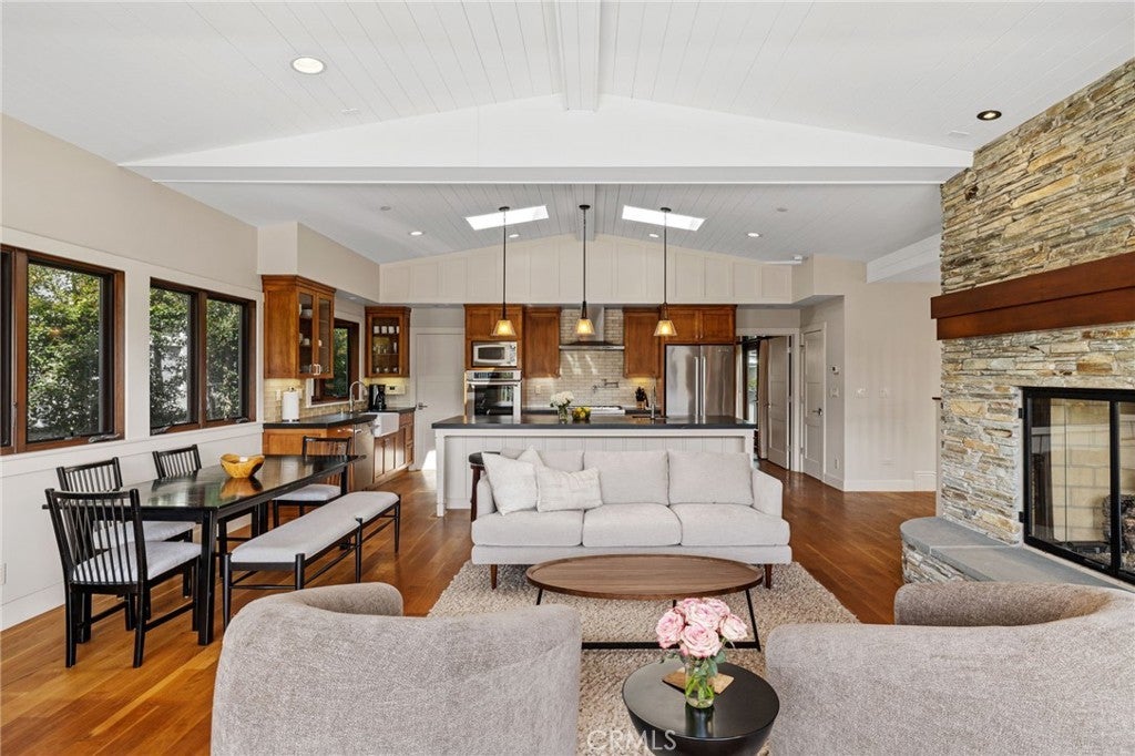 Available short term and long term- rates may very. Welcome to this fully furnished custom contemporary craftsman in the sand section of north Hermosa Beach just steps to the beach, Valley Park, and Pier Avenue shops and restaurants. Designed by late Architect Stan Anderson, this beautiful home features 3 spacious bedrooms plus an office, 2 full baths, 2 half baths, beautiful solid wood floors throughout, and a designer’s touch in updated furnishings for the ultimate coastal lifestyle. Enter the home and proceed to the second level to enjoy the great room that is light and bright with vaulted ceilings, a beautiful fireplace in the living room, and custom trii-fold doors leading out to an expansive balcony perfect for relaxing and entertaining. The chef's kitchen is outfitted with luxury appliances, a large island with beautiful black soapstone countertops, custom cabinetry and a walk-in pantry. Off the living room is a small private office full of natural light. Also on this floor is the primary suite which provides ultimate privacy featuring a large walk-in closet, a wrap-around balcony, and primary bath with heated floors, stone counters, dual sinks, a soak tub, and a separate shower. Transition down the solid hardwood staircase to the entry level which presents a small living space with built-ins, a half bath, and two spacious bedrooms with a shared bathroom. The private back patio has a tranquil feel with string lights, a fire pit, and mature trees integrating the outdoor space for the ultimate California experience. The private back patio has a tranquil feel with string lights, a fire pit, and mature trees integrating the outdoor space for the ultimate California experience. The two-car garage has ample storage and option to add EV charging. There’s additional two-car parking in the driveway. Don't miss out on the opportunity to experience coastal living at its finest in this unique Hermosa Beach home! Owner pays for cleaning service once a month, gardener, water, gas, trash, electric and wifi / internet. (This property is also for sale.)