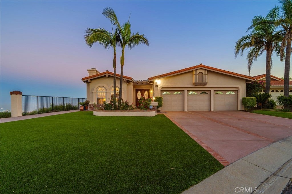 Price Improvement — $100K Reduction | Million-Dollar Views Breathtaking Pacific Ocean, LA Harbor, and Downtown LA skyline views from this coastal estate in an exclusive 24-hour guard-gated community of just 67 homes in Rancho Palos Verdes. Premium lot, timeless design, and true resort-style living. Double doors open to soaring vaulted ceilings, dramatic picture windows, and a marble fireplace. The open layout flows from the living room to the formal dining space and into a chef’s kitchen with custom cabinetry, quartz countertops, Sub-Zero refrigerator, three ovens, and dual dishwashers. The main-level primary suite captures stunning ocean views and features a private fireplace, terrace access, and a spa-style bath with steam shower, jetted tub, dual vanities, and three walk-in closets. Three additional en-suite bedrooms on the lower level offer privacy and flexibility, along with a bonus room ideal for a theater, gym, or studio. Outside, new stone pavers and lush artificial turf create a low-maintenance outdoor retreat, with space ready for an outdoor kitchen or plunge pool. Minutes to Terranea Resort, championship golf, beaches, and top-rated Palos Verdes schools. Now offered at a newly improved price.