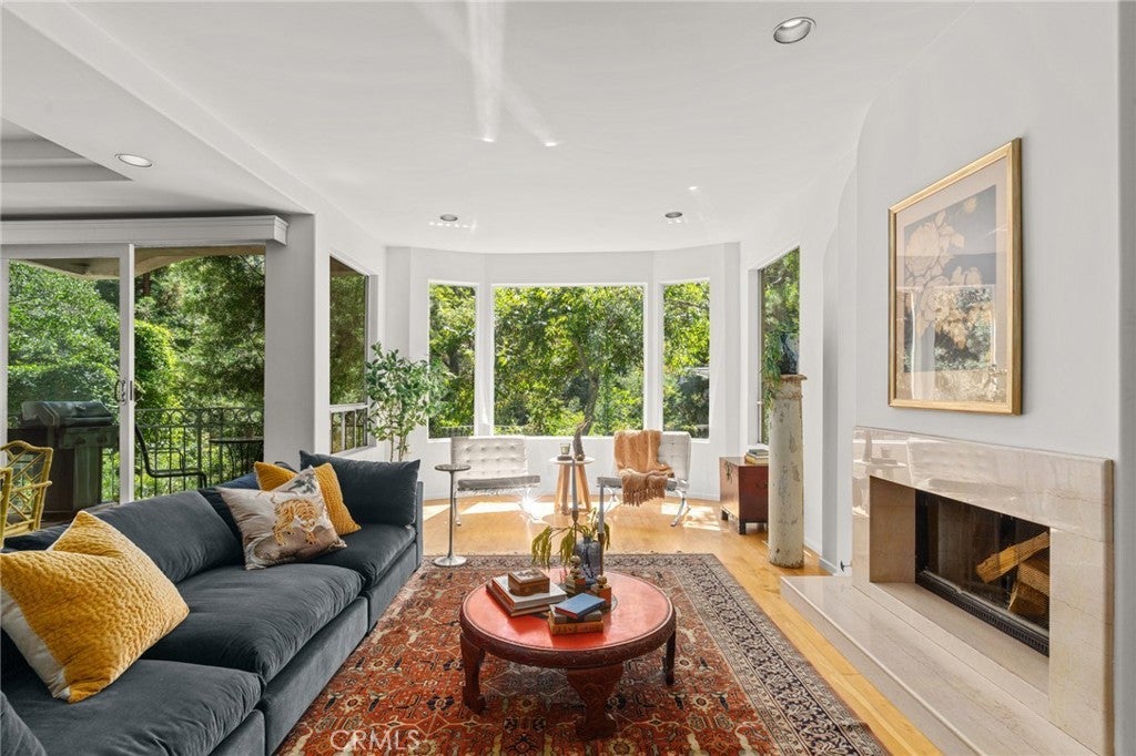 Nestled in a canyon above Beverly Hills, 10055 Reevesbury Drive is a centrally located, elegant retreat surrounded by peaceful nature. Seeking the nightlife of West Hollywood, the glamour of Rodeo Drive, the calm suburbia of Sherman Oaks, or the historic campus of UCLA? All are within a ten-minute drive from this Mediterranean villa. Located on a leafy street and zoned for top nearby schools, the true delight begins inside, as exceptional design and comfort await. Sun-filled open-plan spaces with recessed lighting make this multi-level home perfect for those seeking personal space and privacy while also offering a natural place to gather friends and family. A marble entry introduces a bedroom perfect as a guest suite, office, or creative studio, plus full bath and direct access to the attached two-car garage for easy parking and storage. The main level is built for easy entertaining: an open living and dining great room with expansive west-facing windows framing lush hillside views, wood-burning fireplace, and a chef’s kitchen that keeps everyone connected while you host. Also on this floor, a generous second bedroom, bath and private courtyard - an intimate outdoor nook ideal for morning coffee or yoga. Upstairs, the primary suite lives like a private sanctuary, with soaring ceilings, a separate sitting area, a cozy gas fireplace, and over 1,000 square feet of comfort that makes long days feel shorter. Sliding glass doors open to a private terra cotta terrace for sunbathing or dinner al fresco. The spa-inspired primary bathroom is appointed with marble surfaces, a jetted soaking tub, and dual walk-in closets, evoking the luxury of a high-end spa. In a city that often demands choosing between convenience and calm, 10055 Reevesbury Drive stands out as a rare offering that delivers both. It’s a place where ambition meets tranquility – the pulse of the city at your fingertips, and a serene haven to come back home to.