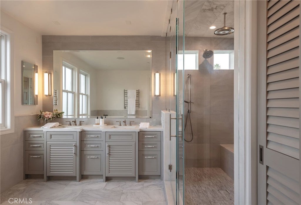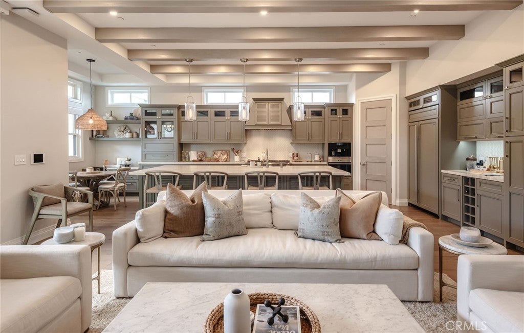 Welcome to 1801 Oak Avenue, a stylish contemporary coastal home featuring six bedrooms and four-and-a-half baths in 5370 square feet of refined living space. Built in 2019 on a 4482 square foot lot, this home offers a harmonious blend of sleek design and cutting-edge technology with the tranquility of coastal living. The open living room features high, beamed ceilings and a striking fireplace wall, making for a sophisticated yet relaxed atmosphere. Folding accordion doors open onto the private yard and patio, creating a fusion of seamless indoor/outdoor living. Al fresco dining and entertaining are a breeze with the built-in Lynx barbecue and prep area, and a turf yard makes for no-fuss maintenance. Chefs will appreciate the stunning kitchen, anchored by a large island with seating for six and offering a SubZero fridge and Wolf, Miele, and Bosch appliances as well as a built-in desk, wet bar, and a cozy breakfast nook. The formal dining room provides an ideal place to entertain or enjoy a leisurely meal at home. Upstairs, the Primary suite is a true sanctuary and features a fireplace, private deck, walk-in closet, and beautiful, spa-like bath with steam shower and soaking tub. Three additional bedrooms and three full baths, as well as a convenient laundry room with sink and custom cabinetry complete the second floor. The finished basement is a haven for relaxing and entertaining and comes complete with a family room, a full-sized wet bar with wine fridge, ice maker and dishwasher, a bedroom and full bath, an office, a home theater, and a 1000+ bottle wine cellar. An elevator and spacious three-car garage, as well as hardwood floors throughout and a thoughtfully integrated Smart Home system are just a few of the amenities found at this beautifully designed, custom home. Perfectly positioned in the highly sought-after tree section of Manhattan Beach, this residence is close to area boutiques, lifestyle amenities, and top-rated restaurants as well as local schools and parks. Enjoy the best of both worlds – a serene and stylish atmosphere not far from the vibrant energy of one of the best beach towns in Southern California.