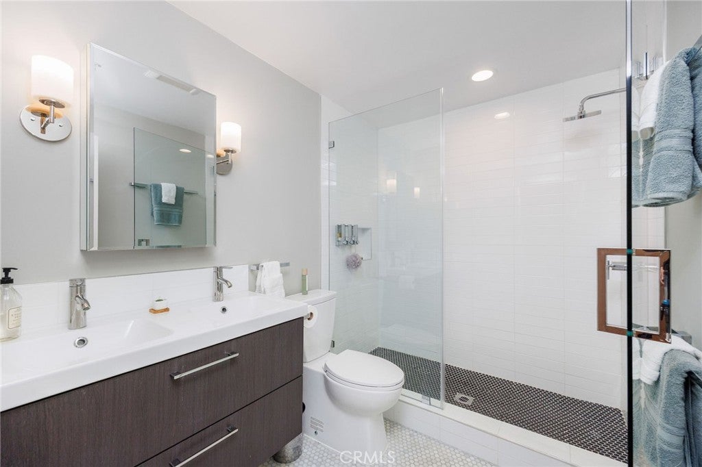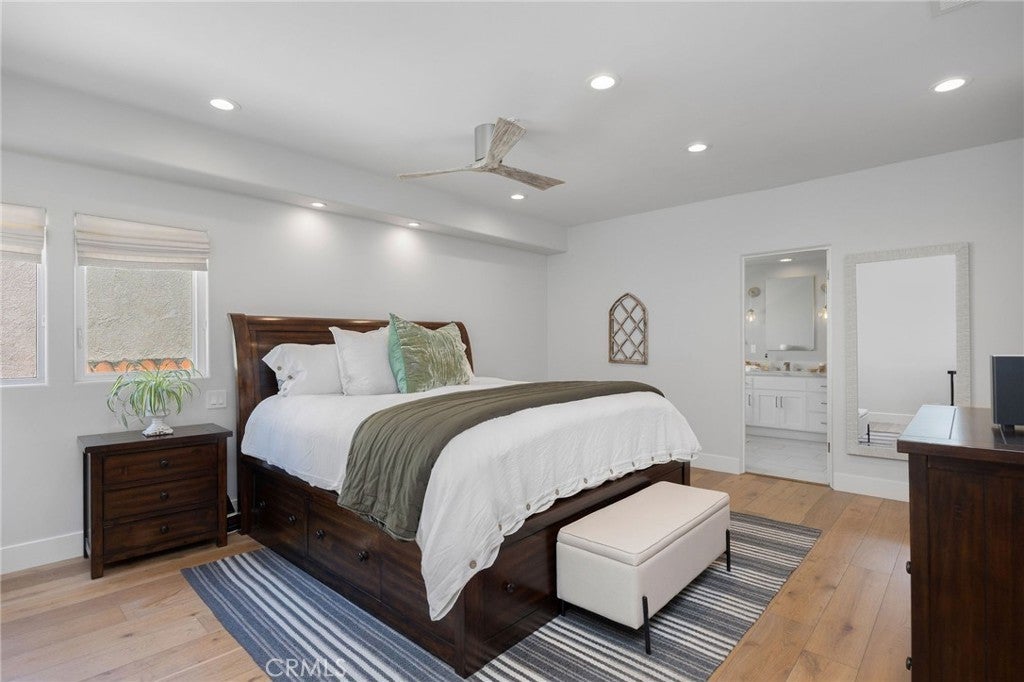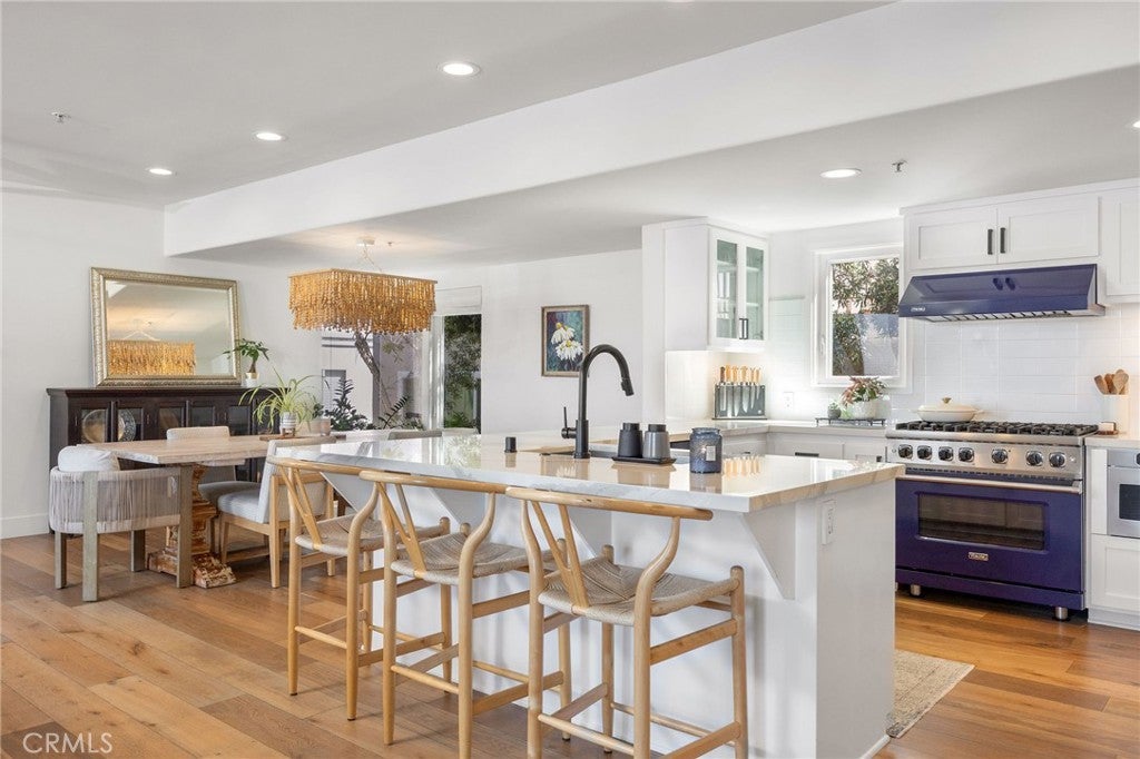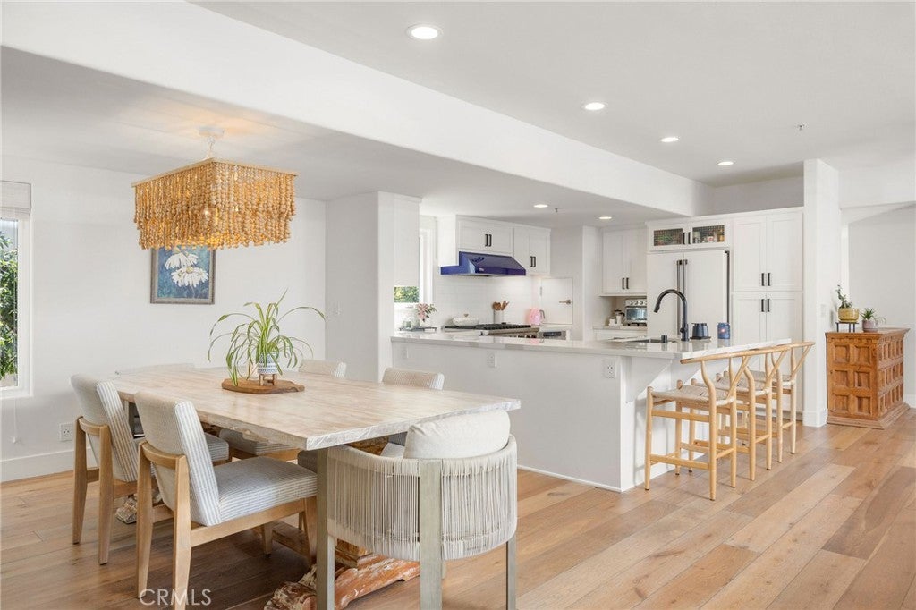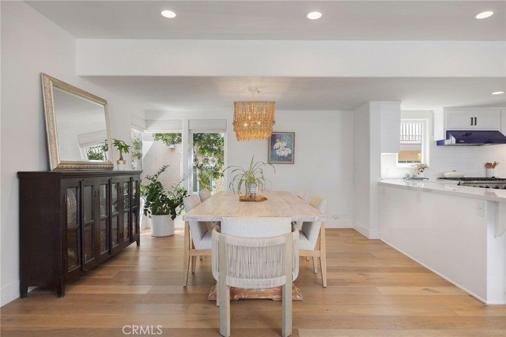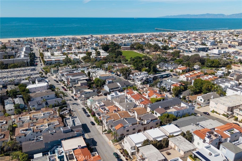 Turnkey coastal townhouse living in a prime Hermosa Beach location - just up from the sand and one block to the Greenbelt. This 3-bedroom, 2.5-bath home offers 2,075 square feet with an open great-room layout, ocean views, and meaningful capital improvements already completed, including a new roof, new deck, hardwood floors, new gas fireplace, fresh paint throughout, and all systems thoughtfully updated. The top level is bright and open, with living, dining, and kitchen spaces that flow naturally through to the outdoor space. Dual sliding doors open to a spacious full property width terrace - ideal for morning coffee, working-from-home afternoons, or hosting friends for sunset evenings with a glass of wine. The kitchen features Cambria quartz countertops and striking cobalt blue Viking appliances, including a 6-burner range, all positioned to stay connected to the main living area and host all the parties. Downstairs, the primary suite opens to a private patio and includes a walk-in closet and a well appointed spa-like bath with dual vanities, soaking tub, and walk-in shower. Two additional bedrooms and a sleek updated bathroom complete the level. Parking and storage set this property apart. In addition to the two-car garage with storage closets, there is an attached and secured carport - great for a golf cart, e-bikes and beach gear. The driveway comfortably fits two additional cars due to the oversized lot, offering parking for up to five vehicles—an uncommon advantage this close to the beach. Located near Pier Avenue, the Strand, and neighborhood cafés and restaurants, this home offers the convenience and lifestyle that define the best of Hermosa Beach living.