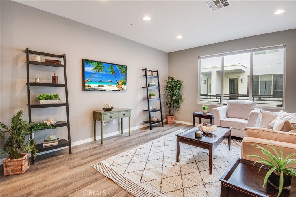 Welcome to resort-style living in the gated community of Three Sixty. This is unlike any community in the South Bay with a friendly community vibe, incredible amenities, great schools and ideally located for anyone with a commute. 12921 Mission #102 is a turn-key retreat with an adaptive floorplan and a quiet location….an even features a 3 car garage! This beautiful home offers 2 spacious and bright suites plus 2 bonus room which can be utilized to fit your lifestyle and needs. Enter through the beautiful foyer with dramatic curved walls and staircase. The spacious front den offers oversized windows and can be used for anything from a formal dining area to an office/den to an additional guest space, and features wide-plank flooring, new paint, and dramatic lighting. Just beyond, you enter the open kitchen with rich, dark cabinetry, stainless steel appliances, quartz counters, pantry, and the spacious kitchen island with countertop seating that is sure to be the gathering spot. This fantastic space opens to the south facing living room bringing in great light through picture windows. This beautiful space features high ceilings, recessed lighting, picture windows, wide-plank flooring, custom paint, and direct access to the patio to easily merge indoor and outdoor spaces. Head upstairs to two private suites, along with an additional office/den/family room, and the conveniently located laundry. The south facing suite features beautiful overhead lighting, new paint, and new carpet. This gorgeous space features an oversized window to let in the light and offers a walk-in closet and a luxurious bath with dark cabinetry, quartz counters, a tub/shower, and a separate water closet. The primary suite is spacious and bright, featuring a small balcony, new carpet, new lighting and ceiling fan, new paint, dual walk-in closets, and a beautiful primary bathroom. Additional highlights include central heat and AC, south-facing deck, and so much more. Three Sixty offers a true community feel in which it’s hard not to say hi and wave to the neighbors. Amenities are simply incredible highlighted by the incredible pool deck of the "center", with multiple pools, jacuzzi, luxury cabanas, dramatic firepit, outdoor seating, BBQ areas, numerous luxury lounges, 2 dog parks, playground, grassy parks, basketball and pickleball court, and the state of the art fitness center. The active and diverse residents give this a true neighborhood feel.