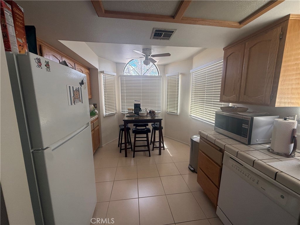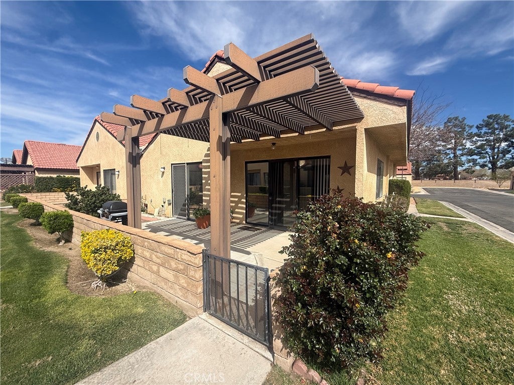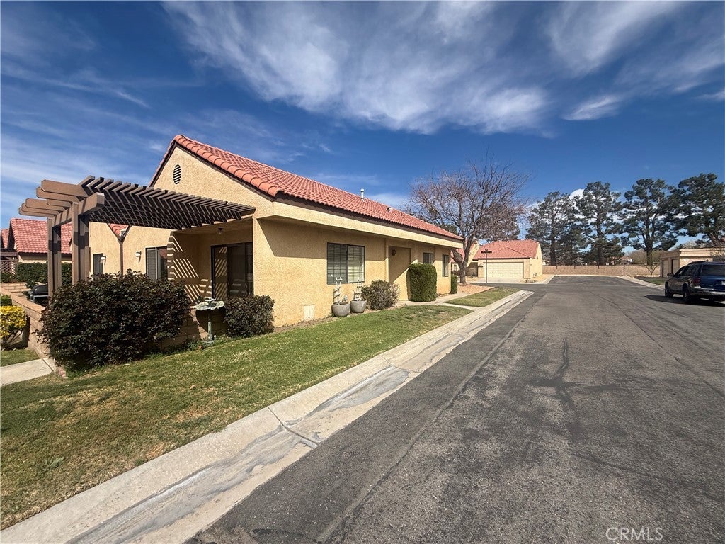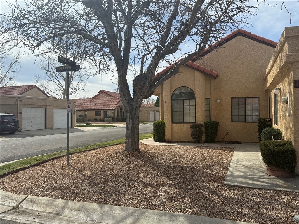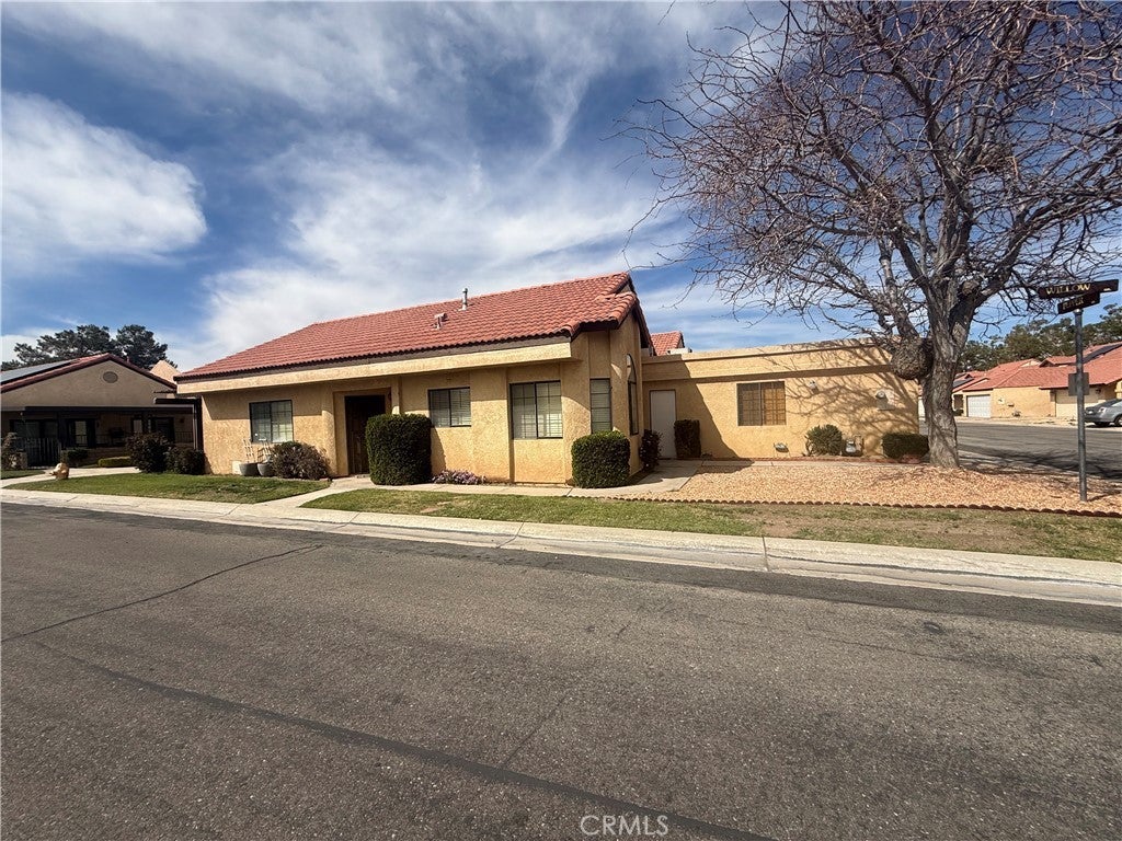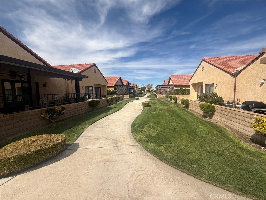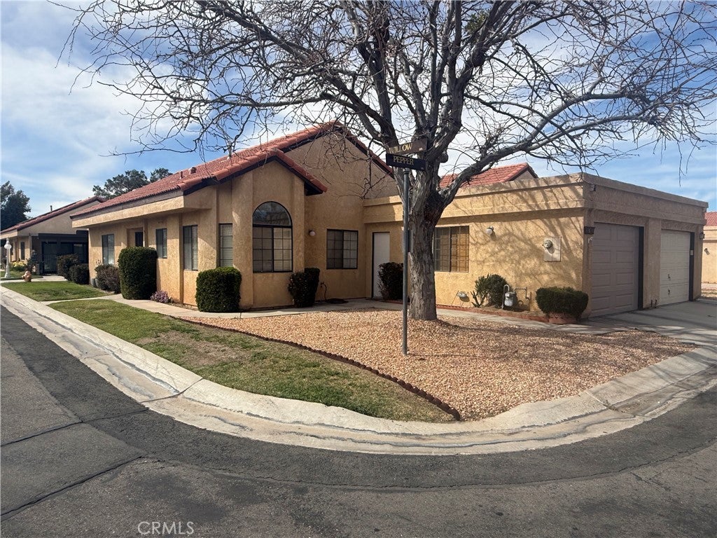 Relax in the Jess Ranch community of Apple Valley, 2-bedroom, 2-bath home is situated on a quiet corner lot. spacious living and dining room combination, tile flooring and an open, comfortable layout. Sliding glass doors in both the living room and the primary bedroom lead to a private patio courtyard with a low masonry wall — perfect for entertaining while enjoying peaceful greenbelt views. The kitchen features a breakfast nook, laundry is located in the hallway near the second full bath. The generously sized primary suite offers: Walk-in closet Additional linen storage Dual sinks in the en-suite bath Direct patio access through sliding glass doors The second bedroom provides a bonus with closet access leading to the one-car garage, newer garage door and automatic opener. Community Amenities Residents of Jess Ranch enjoy: Gated security Community pool & tennis courts Greenbelts and walking paths New clubhouse proximity to shopping, dining, entertainment, and the scenic Mojave Riverwalk If you’re looking for low-maintenance living in an active adult community, this home is a must-see.