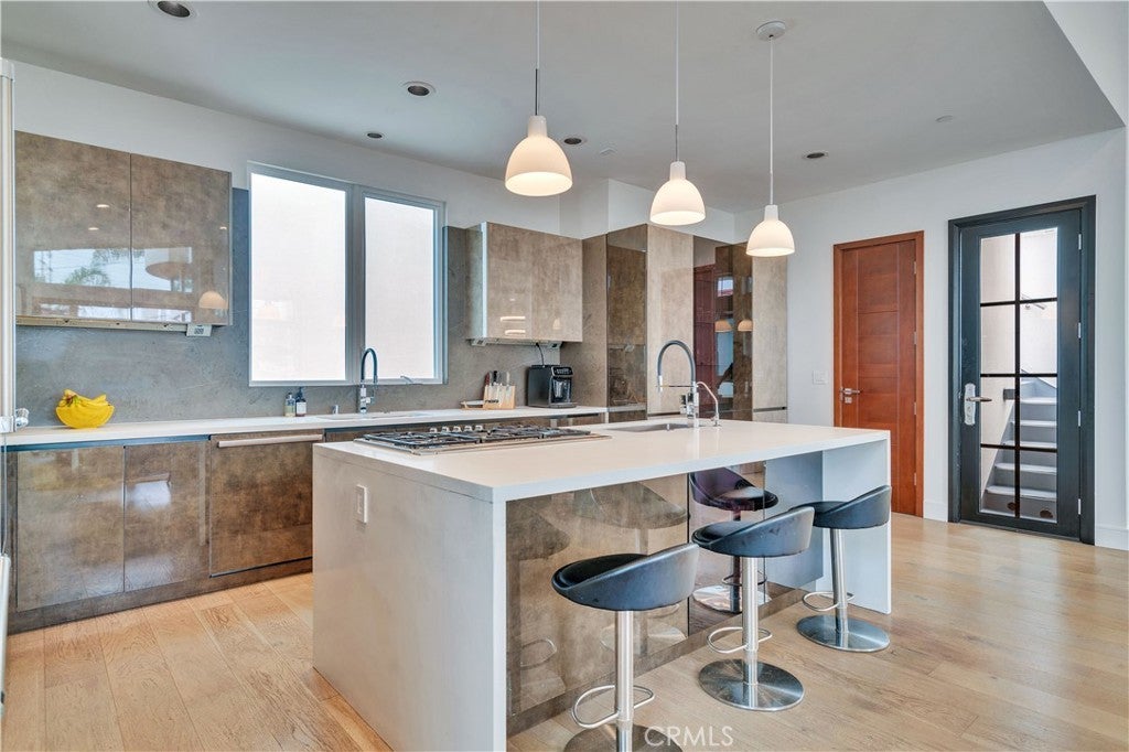 Welcome to a breathtaking expression of modern coastal luxury, where refined design meets effortless beachside living. This custom-built, detached three-story residence is a true entertainer’s dream, showcasing panoramic ocean views, elevated finishes, and seamless indoor-outdoor flow at every turn. Step inside and feel instantly inspired by the light-filled open-concept layout. Expansive folding glass doors dissolve the boundary between indoors and out, opening to a spacious balcony that captures ocean breezes and glowing sunsets — the perfect backdrop for morning coffee or evening gatherings. Every detail has been thoughtfully curated to create a home that feels both sophisticated and welcoming. The gourmet kitchen is a showpiece and a chef’s paradise. Outfitted with sleek custom cabinetry, premium stainless-steel appliances, dual sinks, an oversized walk-in pantry, and expansive quartz countertops, it offers both beauty and function. A generous breakfast bar flows seamlessly into the dining and living areas, creating an inviting space designed for everything from intimate dinners to lively celebrations. With four spacious bedrooms and four spa-inspired bathrooms, comfort and privacy abound. The primary suite is a private sanctuary, complete with its own balcony, a custom walk-in closet, and wiring for a dedicated entertainment system. The luxurious en-suite bath invites relaxation with a freestanding soaking tub, oversized walk-in shower with dual shower heads, floating quartz vanities, and sleek LED-lit mirrors — a true retreat at the end of the day. Elevating everyday living, the home features a private rooftop deck with sweeping ocean views — an unforgettable setting for sunset soirées or quiet evenings under the stars. Additional highlights include a 3-stop elevator, striking floating fireplace, central vacuum system, split-zone security, professional closet organization, solid hardwood floors, designer lighting, quartz accents, and central A/C. Ideally located just moments from golden sandy beaches, acclaimed dining, boutique shopping, lush parks, and award-winning schools, this architectural masterpiece offers the ultimate blend of style, comfort, and convenience. Experience contemporary coastal living at its finest — vibrant, luxurious, and undeniably unforgettable.