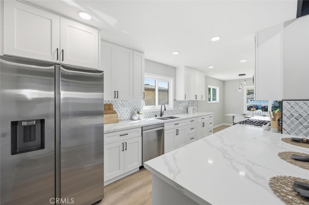 Discover your dream home in West Torrance, where style meets effortless living in one of the South Bay’s most desirable neighborhoods. This inviting residence welcomes you with wide plank vinyl flooring, abundant natural light, and a thoughtfully crafted layout that flows seamlessly. The remodeled kitchen features sleek Calacatta quartz countertops, stainless steel appliances, and a cozy breakfast bar—perfect for casual mornings or hosting friends. It opens into a warm and inviting family room with a lovely fireplace and easy access to a spacious backyard, ideal for entertaining, relaxing, or creating your own outdoor oasis. The first floor includes a versatile bedroom and remodeled bath, offering flexibility for family, guests, or a home office. Upstairs, the serene primary suite offers a spa-like en-suite with luxurious soaking tub and oversized shower. Two additional bedrooms and another updated bath round out the second floor, providing ample space for all your needs. Minutes from parks, top-rated schools, and premier shopping and dining, this home offers the perfect blend of charm, convenience, and an unbeatable lifestyle. Don’t miss your chance—schedule your private tour today!