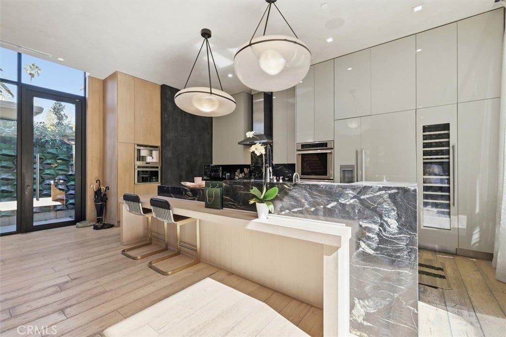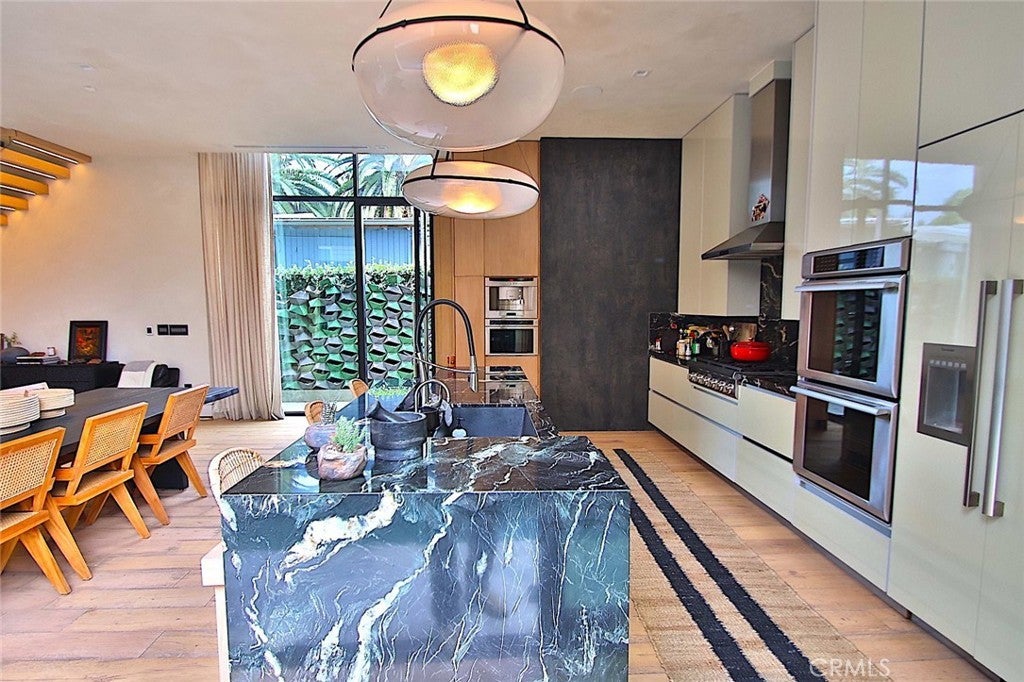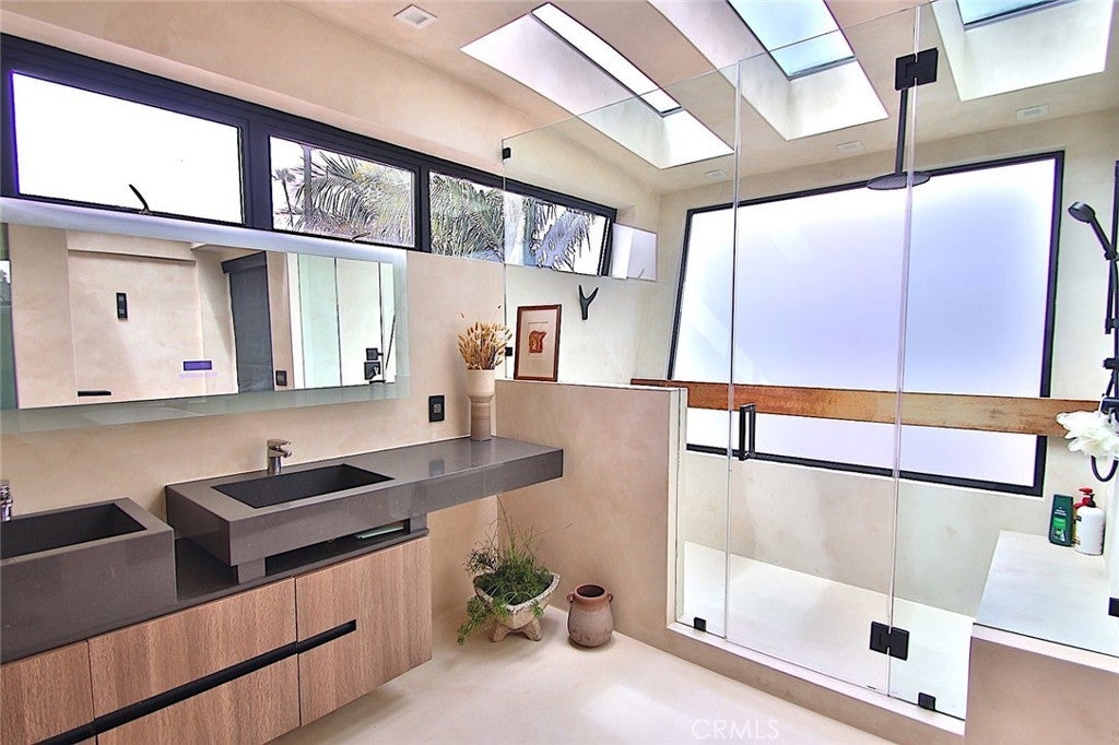 Welcome to 750 California, an extraordinary residence by visionary architect Alon Zakoot. Experience the ultimate blend of sophistication and comfort in this stunning architectural home, just off Abbot Kinney and featuring a captivating pool! This exceptional residence boasts remarkable craftsmanship and design, creating an atmosphere of warmth and elegance throughout. As you approach, the serene exterior fountain and waterfalls create a Zen-like ambiance with lush landscaping that invite you into your private oasis. The open-concept living area offers a perfect balance of elegance and functionality, anchored by a striking floor-to-ceiling fireplace and filled with natural light from expansive glass walls. The chef's kitchen is designed for both culinary enthusiasts and entertaining, with a spacious island and high-end Thermador appliances. Ascend to the master suite, where a cozy fireplace and breathtaking views await through corner pocket windows. The spa-like master bath, complete with six skylights and a rainforest shower, provides a luxurious escape. Enjoy sunsets from your private sky deck (approx. 800 sq. ft.) with 360 degree view, capturing the essence of Venice living at its finest. This home is currently being rented month to month for $18,000 a month for the past 13 months. Prior to that it was leased for $20,000 and $24,000 a month the year before.