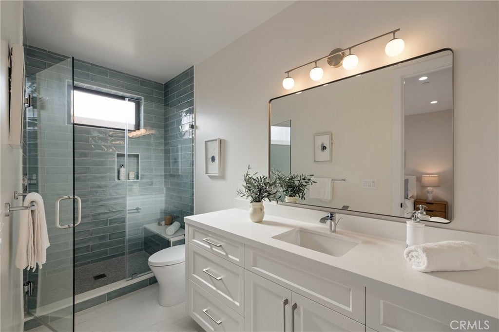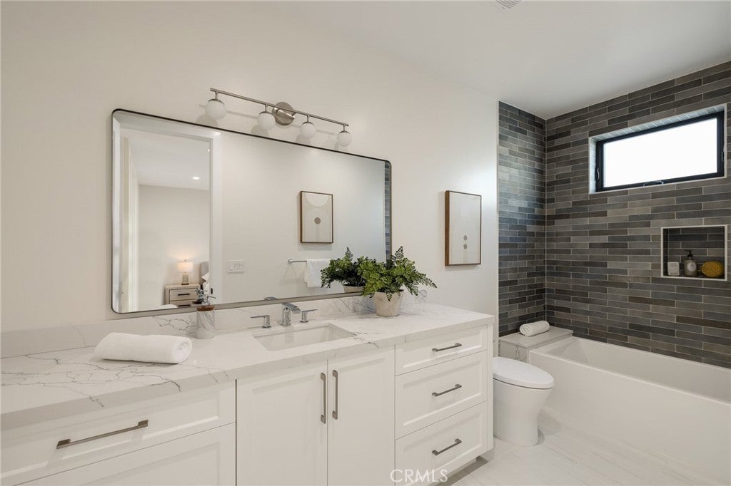 This newly constructed masterpiece in Manhattan Beach offers 6 bedrooms, 6.5 bathrooms, and a dedicated office across 4,666 square feet of luxurious living space on a 7,500-square-foot lot. Designed with an open floor plan, this home is perfect for modern living, featuring a chef’s kitchen with quartz countertops, a bar top, a spacious island that opens to the living room, and a high-end Thermador appliance package, including a wine fridge and ice maker. A walk-in pantry with a wine wall adds both style and functionality. The primary suite is a true retreat, boasting a soaking tub and a private balcony, while the large sliding glass door in the living room creates seamless indoor-outdoor living, leading to an expansive backyard with a turf putting green. Additional highlights include a dry bar, recessed lighting throughout, fireplaces in both the living room and outdoor patio, an individual laundry room, and a 3-car garage. Located just minutes from award-winning Mira Costa High School, this home is a rare blend of elegance, comfort, and convenience in the heart of Manhattan Beach.