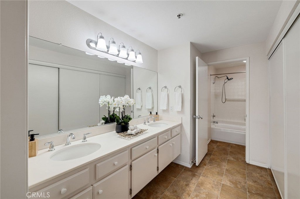 Experience light-filled, modern living in the heart of Central Torrance! This super clean and move-in ready ground-level condo is perfect for those seeking a "no stair" home. The rare layout features two spacious master suites on opposite ends of the living area for ultimate privacy, plus a convenient powder room for guests. Both ensuite bedrooms have double sinks and ample closet space. The inviting living room centers around a cozy fireplace and, along with both bedrooms, opens directly to an expansive covered patio. Running the entire length of the condo and overlooking a serene garden, this outdoor space is ideal for quiet reading, enjoying your favorite cup of coffee, or outdoor entertaining. The kitchen boasts a large breakfast bar, and the unit includes a dedicated laundry room and plantation shutters. Two side-by-side parking spaces are ideally located near the elevator and close to the unit for easy access. Windemere’s gated community offers resort-style amenities: lap pool, swimming pool, spa, rec room, ping pong, billiards and BBQ areas. Perfectly situated between Del Amo Mall and Wilson Park—enjoy world-class dining, shopping, and the weekly Farmer’s Market just a short distance away!