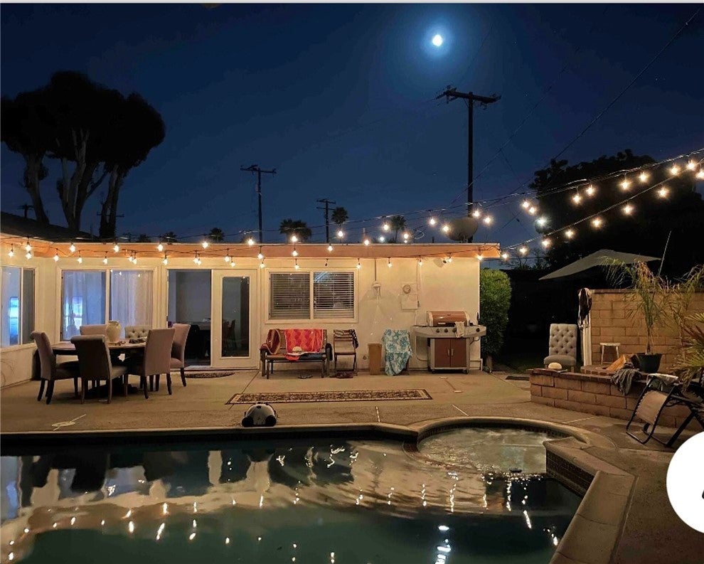 Welcome to this beautifully updated 4-bedroom, 2-bath single level home in North Carson, offering comfort, style, and a great setting for entertaining. The home features attractive laminate flooring throughout, recessed lighting, a whole-house fan to rapidly cool things down, and elegant crown and base moldings that create a polished, modern feel. The remodeled kitchen and bathrooms have been thoughtfully updated, while the living area is highlighted by a sleek, contemporary fireplace and upgraded customizable lighting throughout the home. Step outside to a backyard designed for relaxation and entertaining. The spacious rear yard includes new electrical outlets, new stucco on the walls, and new Italian stone flooring surrounding the heated pool and spa, a built-in gas firepit and plenty of room for outdoor gatherings, and drought-tolerant landscaping for easy maintenance. A unique feature of the property is its open western exposure—well above Del Amo park and baseball fields, separated by a very quiet flood control channel—providing extra privacy, abundant afternoon sunlight for the pool, and beautiful sunset views without neighboring homes blocking the sky. The garage offers newly installed 220/240v hardware for charging an electric vehicle, extensive floor-to-ceiling cabinetry for exceptional storage, and laundry machines, making it move-in ready. Ask about the optional inclusion of 3 minisplit HVAC systems!