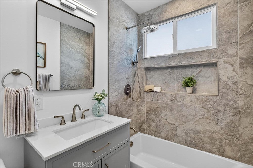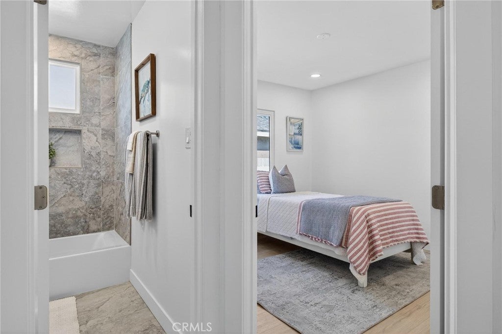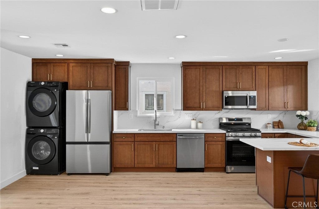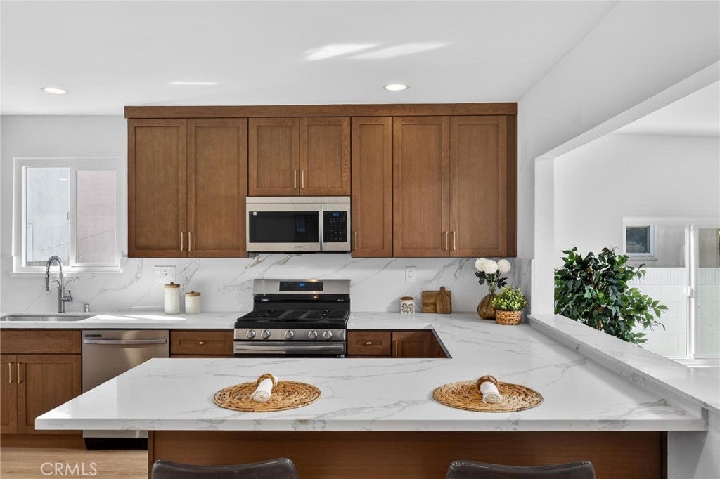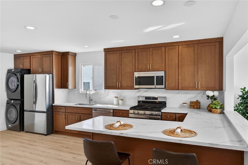Fully remodeled and filled with natural light, 18901 Haas Ave offers a spacious and thoughtfully designed layout in a quiet Torrance neighborhood. This 4-bedroom, 2-bathroom home PLUS a dedicated office spans approximately 1,850 square feet on a flat 5,000+ square foot lot, delivering modern updates and flexible living spaces throughout. Inside, new wide plank flooring and energy-efficient windows create a bright and inviting atmosphere. The beautifully remodeled kitchen features rich wood cabinetry, light quartz countertops, and stainless steel appliances, opening to an oversized dining area that flows naturally into a step-down living room—ideal for everyday living and entertaining. Just off the kitchen, a generous office provides the perfect space for working from home or creative pursuits, while a convenient stackable laundry area includes a washer and dryer. The home’s layout offers excellent separation, with three bedrooms and a full bathroom located off the dining area, while the private primary suite sits just off the living room with views of the backyard. The oversized living room opens to a patio and a large, flat backyard—offering plenty of room for outdoor dining, play, or future possibilities. Additional improvements include a new roof, new windows, new HVAC, new electrical panel, and updated finishes throughout. Situated on a quiet horseshoe street with minimal through traffic, the home offers a peaceful setting while providing quick freeway access for commuters, along with close proximity to award-winning Torrance schools, shopping, dining, and less than five miles to the beach.